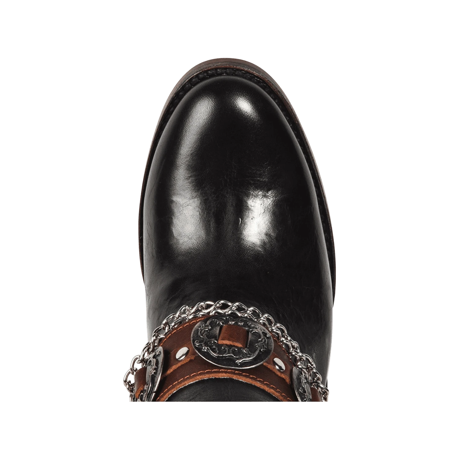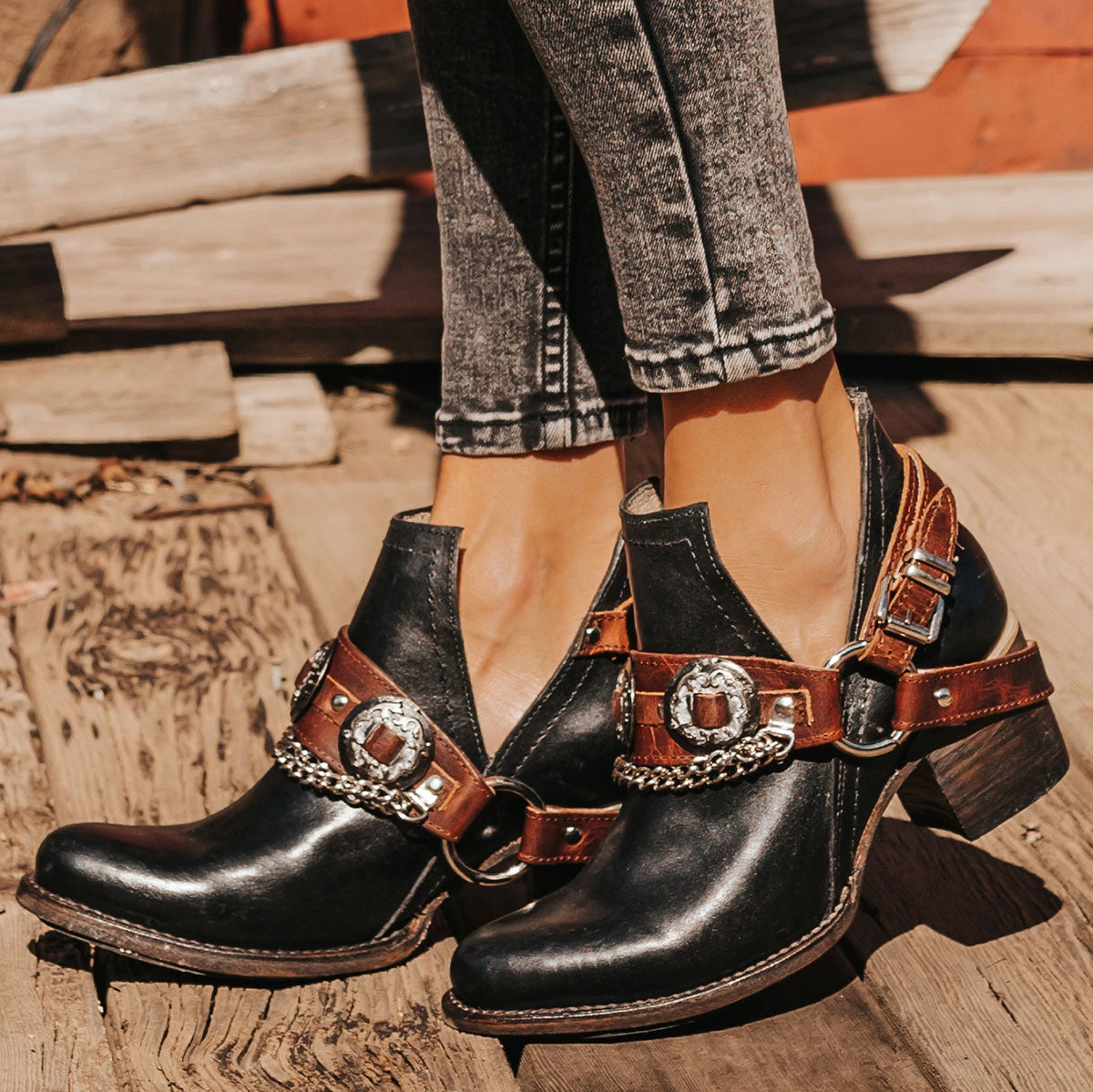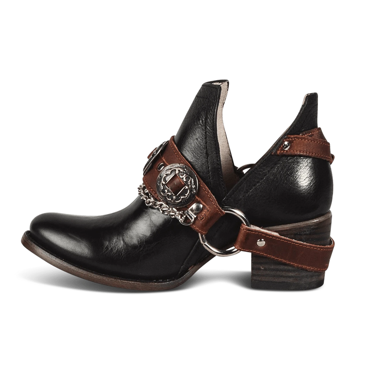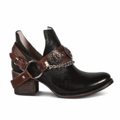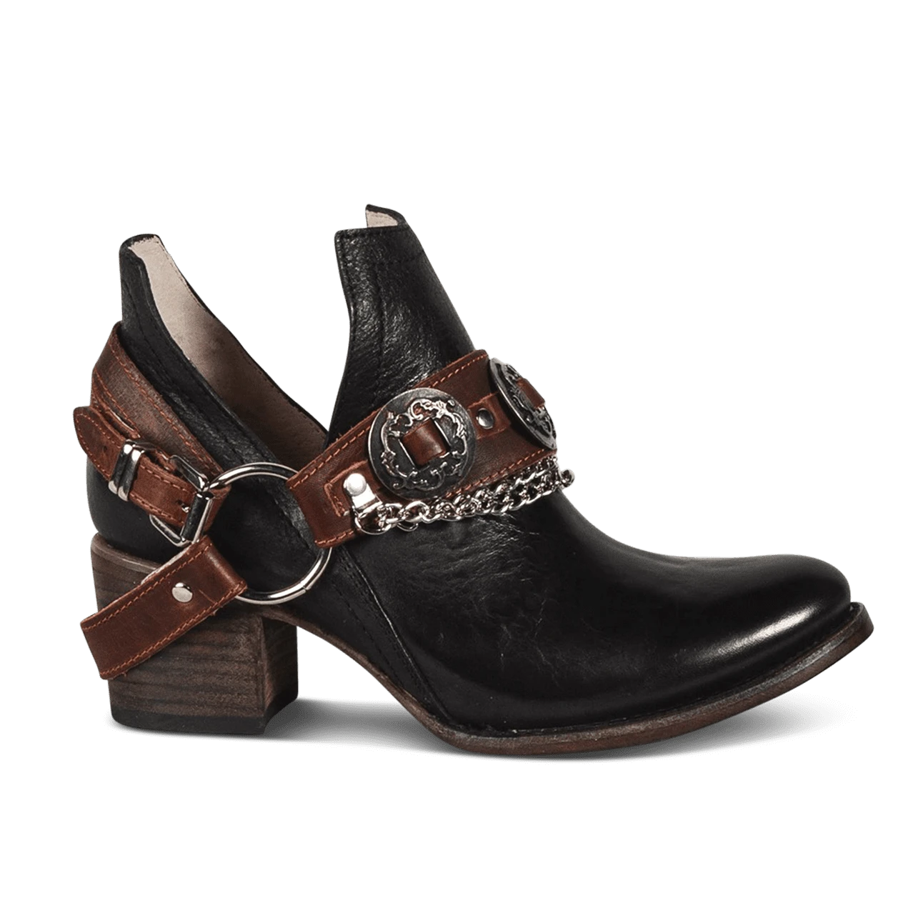 Bemuse the masses in the MYSTIC. V-shaped ankle framing cuts paired with a flattering heel and an almond toe will elevate your favorite outfit, whether it be day or night. Mixed metal chains with coin details will style perfectly with your new flowy sundress.