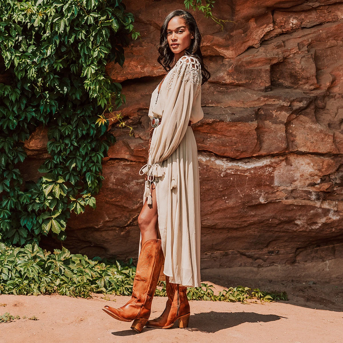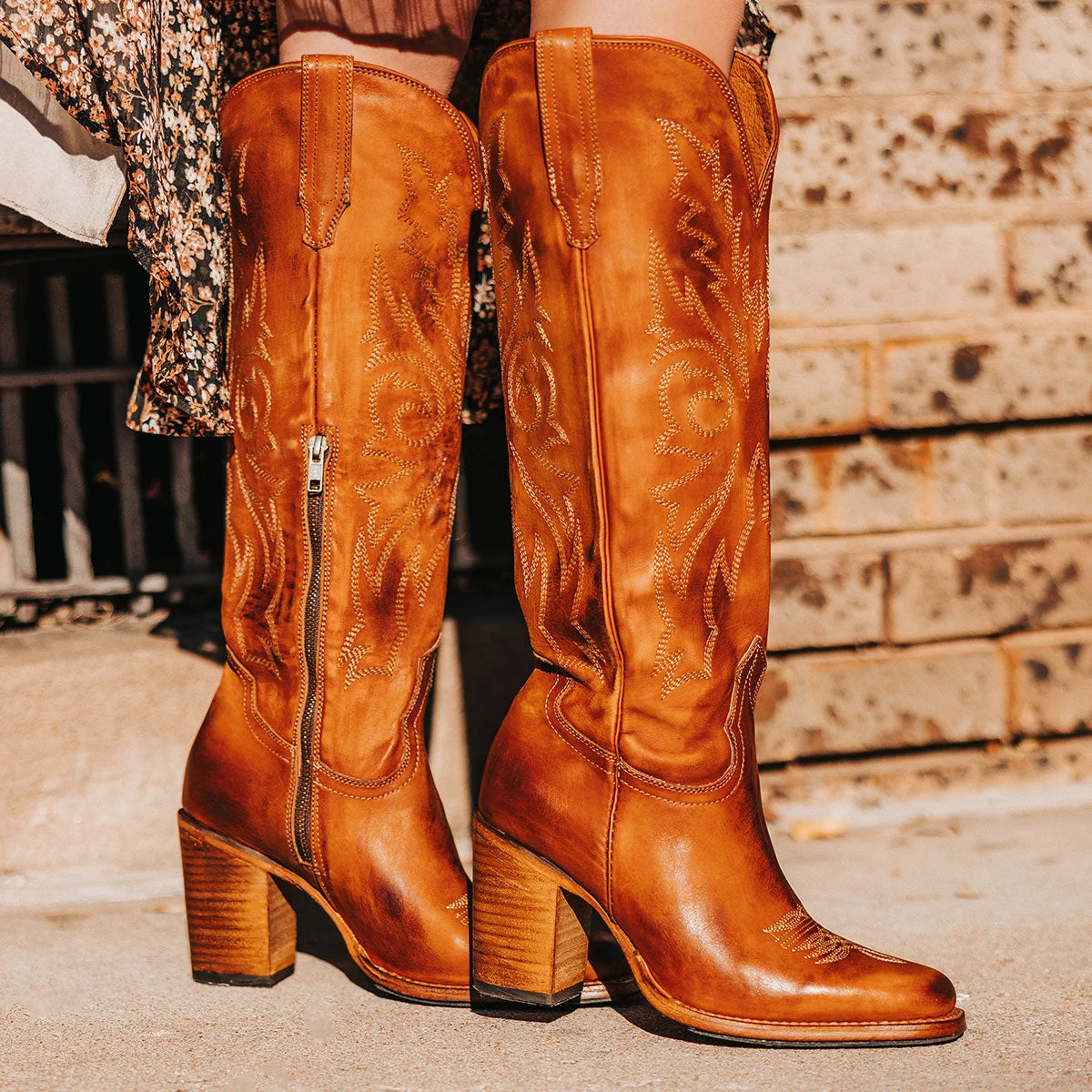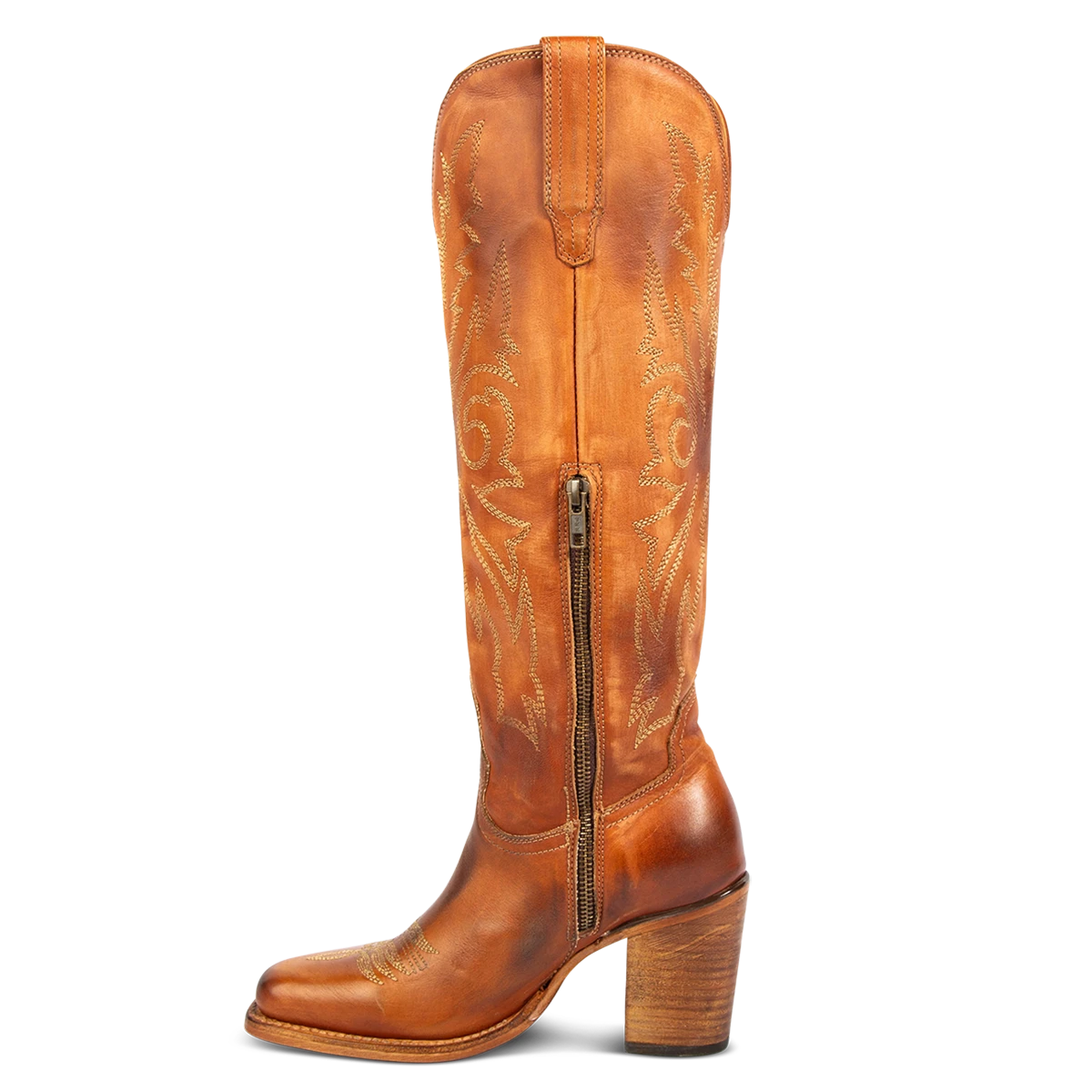 Redefining a classic Western silhouette with modern charm and flair – PANAMA. Intricately crafted with shaft stitch detailing and traditional square toe construction to pull forward our outlaw mentality. This staple boot features stitched in leather pull straps, an inside working brass zipper and a stacked heel for stability and durability all season long.