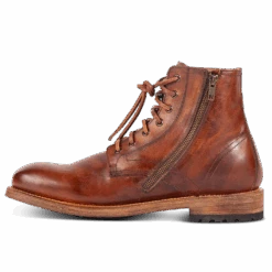 Pairing classic cool with contemporary edge – PENDLETON. Constructed on a low heel, this distressed leather boot is the perfect balance of strength and style with a brass zip closure, customizable leather lacing, and almond toe.