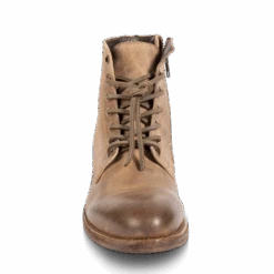 Pairing classic cool with contemporary edge – PENDLETON. Constructed on a low heel, this distressed leather boot is the perfect balance of strength and style with a brass zip closure, customizable leather lacing, and almond toe.