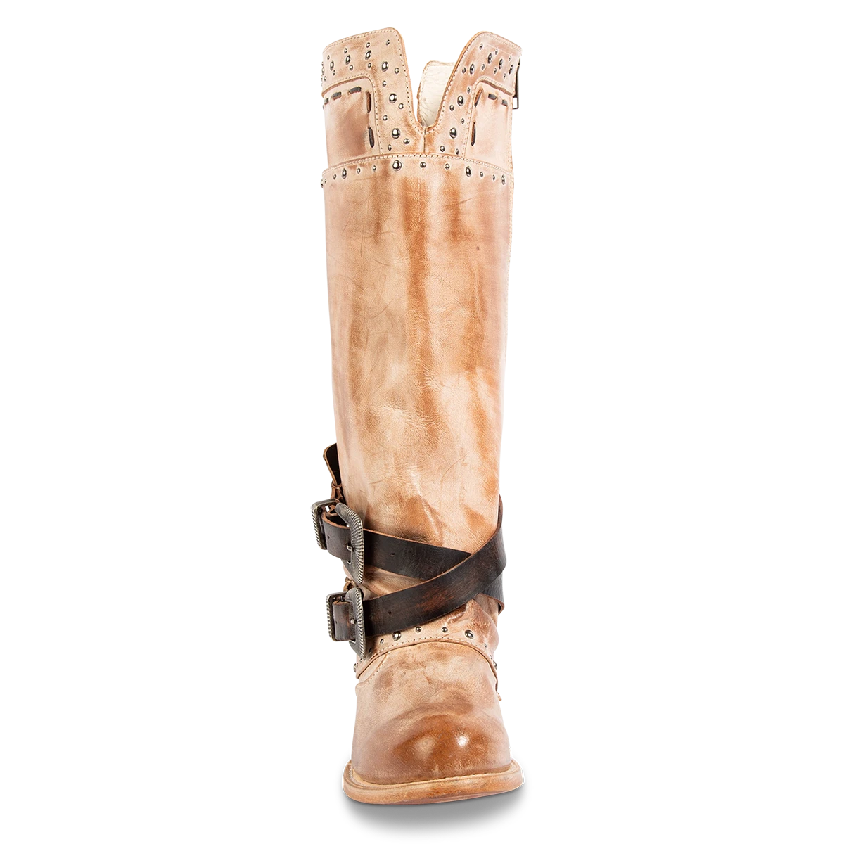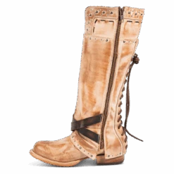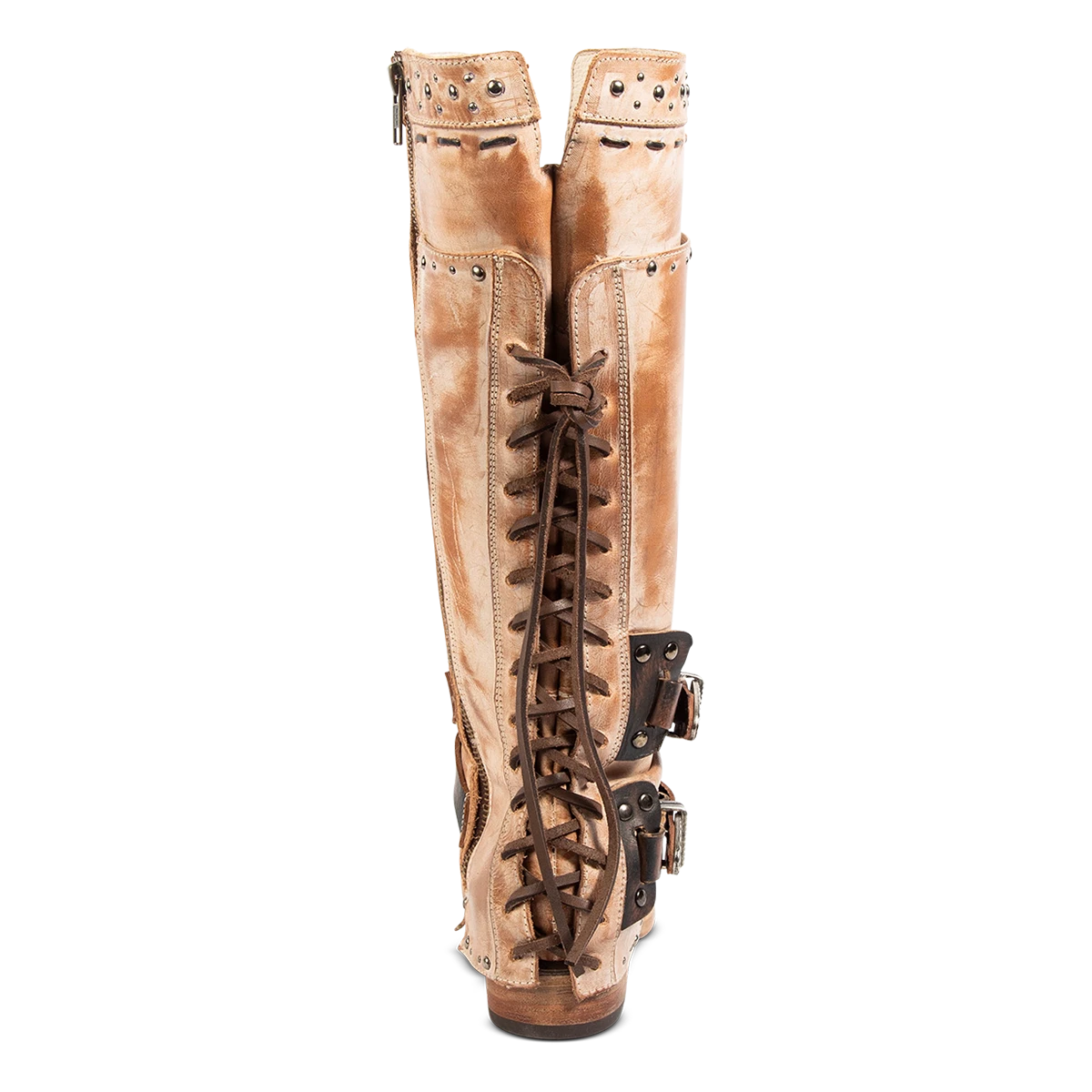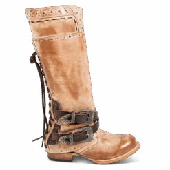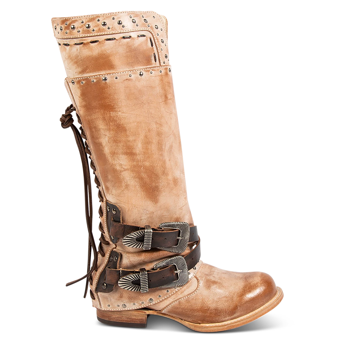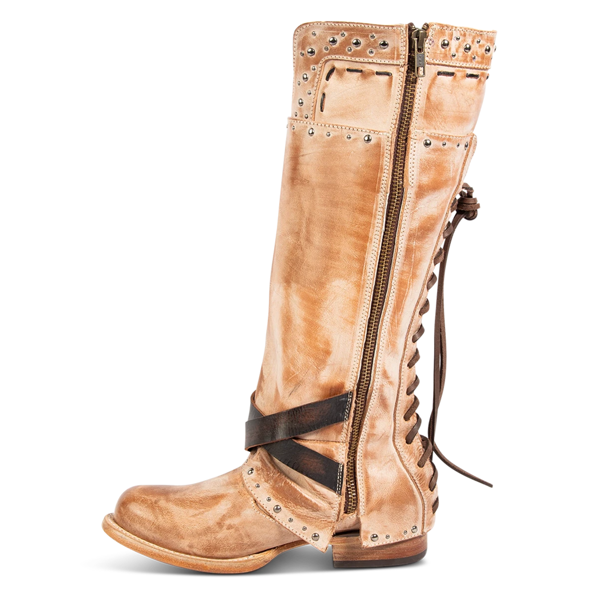 Detailed with embossed hardware and buckled up for Fall, introducing RAMONA. Handcrafted with 100% full grain leather, this industrial boot combines functional elements such as lace up backing and an inside working zipper with an Outlaw personality. Built on a low heel and round toe construction for roomy comfort and fit.Â