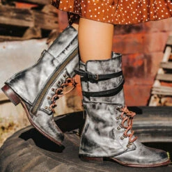 Stay grounded in the RAVI. This unique mid-calf construction features a decorative D-ring lace-up and is connected to a leather overlay with zippers at each heel. With decorative belting and a full inside brass zip closure, you’ll be an effortless trendsetter.
