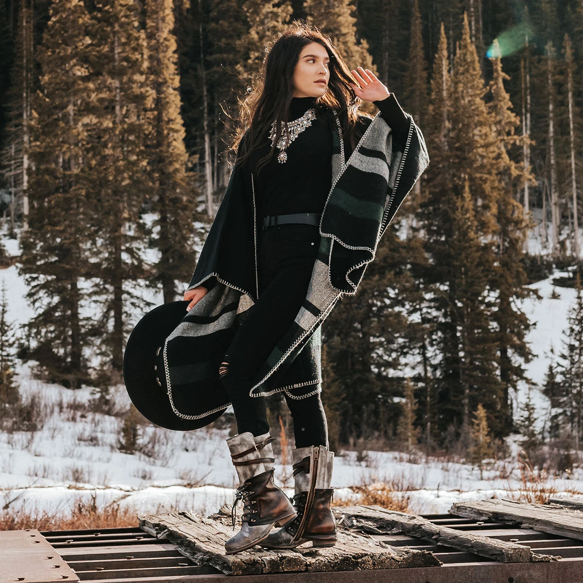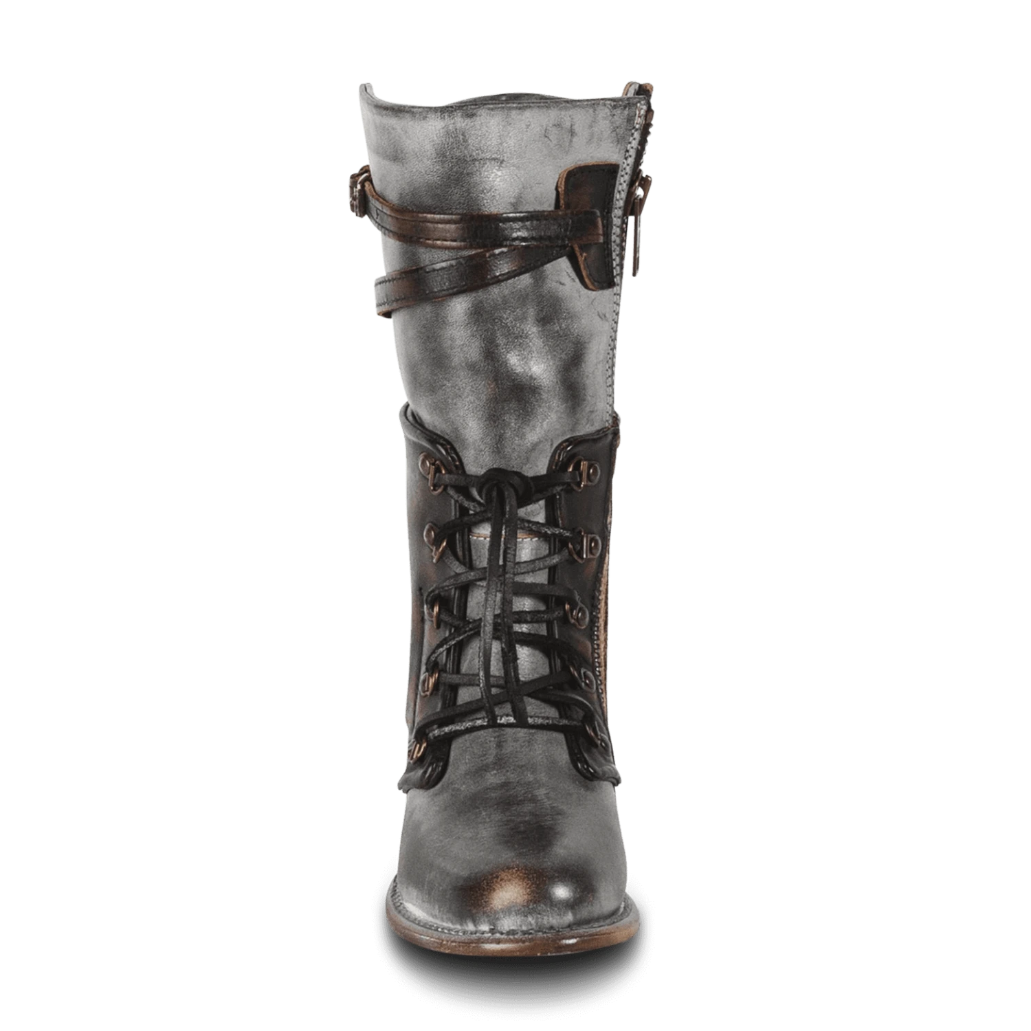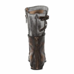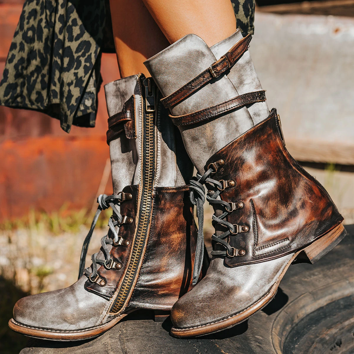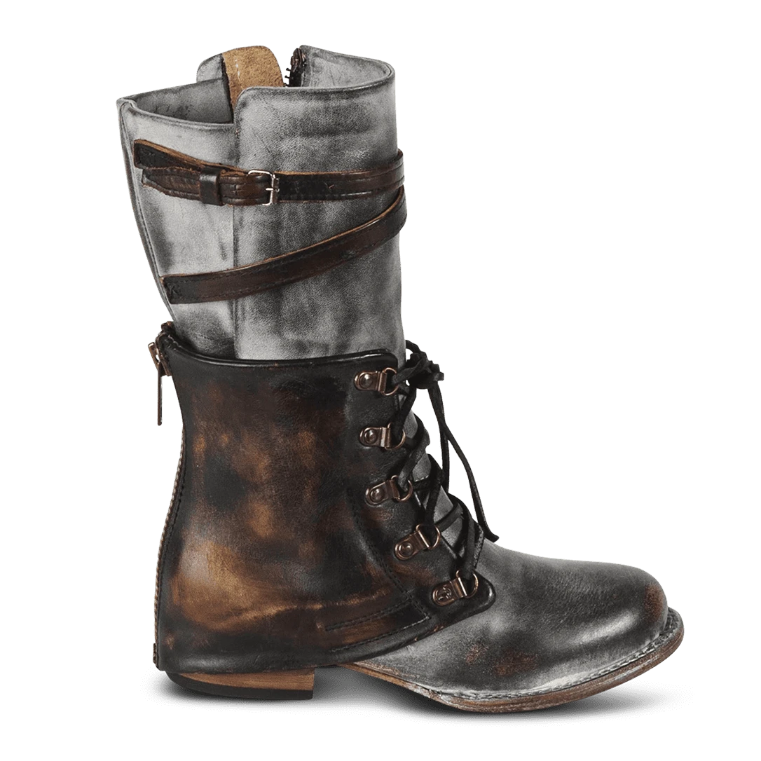 Stay grounded in the RAVI. This unique mid-calf construction features a decorative D-ring lace-up and is connected to a leather overlay with zippers at each heel. With decorative belting and a full inside brass zip closure, you’ll be an effortless trendsetter.