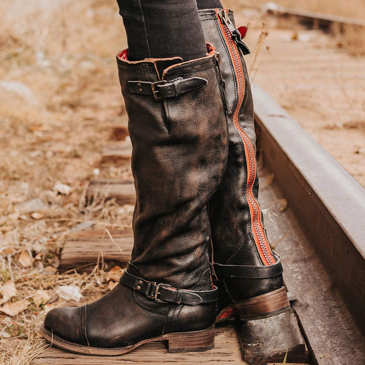Did you miss me? Making a return with its signature red tracked zip closure, the ROADEY has us all feeling nostalgic. Back better than ever, this classic silhouette is constructed on a low wood heel for unfazed comfort, while an adjustable shaft buckle can be tailored for an ideal fit. Whether you’re on the road less traveled or wandering the city streets, the ROADEY adventure awaits.