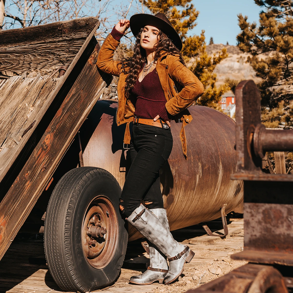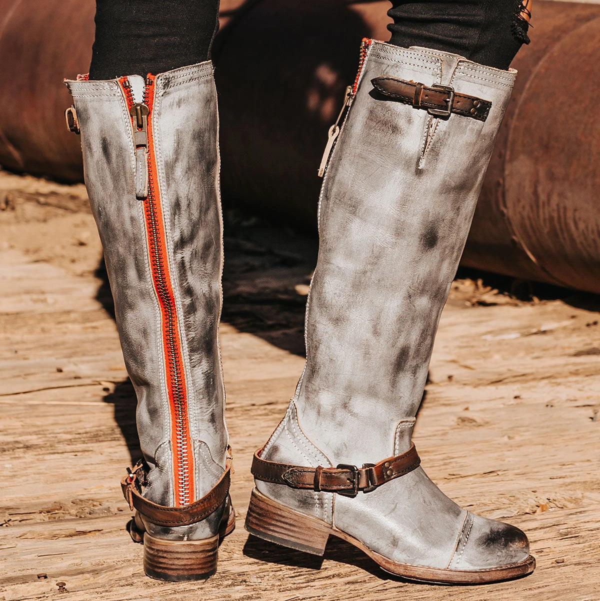 Did you miss me? Making a return with its signature red tracked zip closure, the ROADEY has us all feeling nostalgic. Back better than ever, this classic silhouette is constructed on a low wood heel for unfazed comfort, while an adjustable shaft buckle can be tailored for an ideal fit. Whether you’re on the road less traveled or wandering the city streets, the ROADEY adventure awaits.