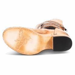 A boot as unique as you are, introducing SAVAGE. Constructed with 100% full grain leather that combines a woven textile upper with a delicate braided trim, SAVAGE blends the line between casual and bold statement making. Built on a low block heel for effortless movement and features a calf cut-out with round toe construction for a roomier fit.Â
