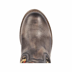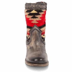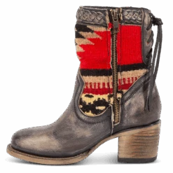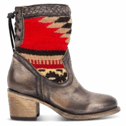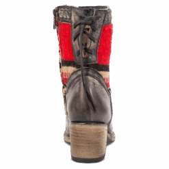 Introducing this abstract staple to our flock – SONGBIRD. These unique and individually handcrafted booties are intricately woven with vibrant multi-colored thread detailing that stand out against a rich, 100% full grain leather shaft. With the addition of subtle details such as back tie lacing and a leather braided accent, SONGBIRD combines the foundation of a traditional stacked heel bootie with character and personality.Â