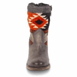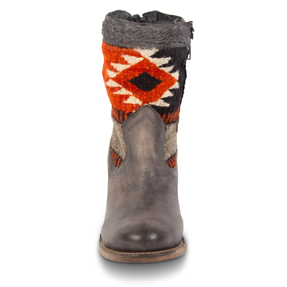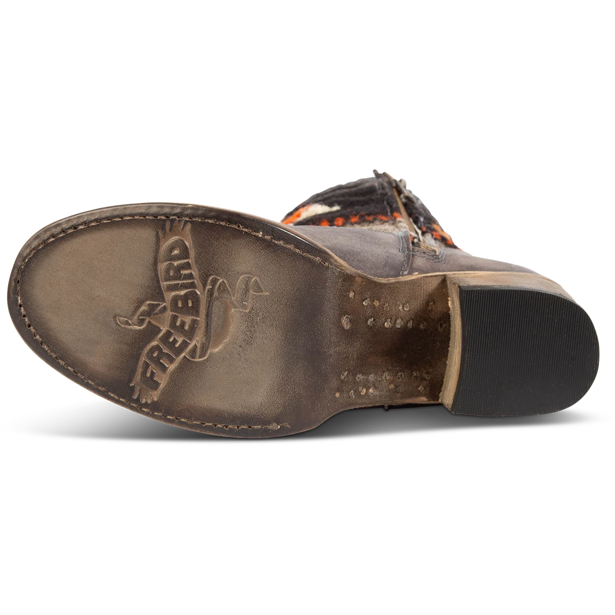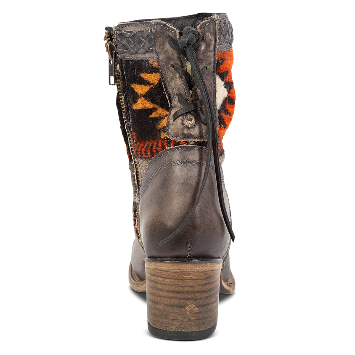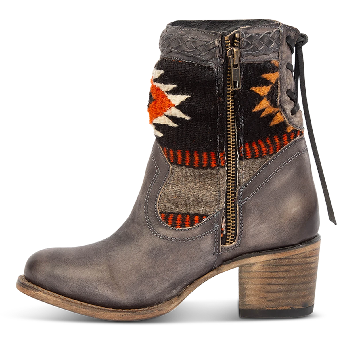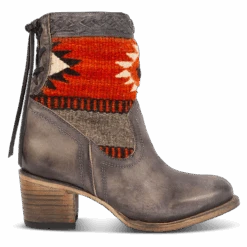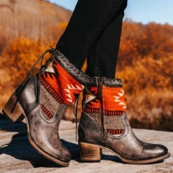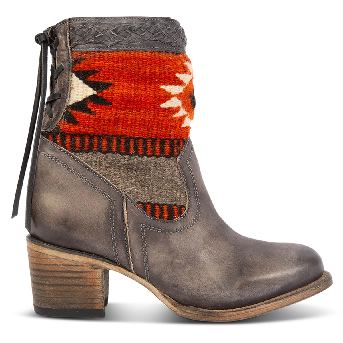 Introducing this abstract staple to our flock – SONGBIRD. These unique and individually handcrafted booties are intricately woven with vibrant multi-colored thread detailing that stand out against a rich, 100% full grain leather shaft. With the addition of subtle details such as back tie lacing and a leather braided accent, SONGBIRD combines the foundation of a traditional stacked heel bootie with character and personality.Â