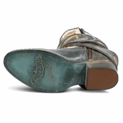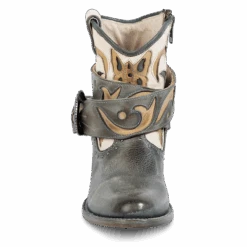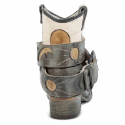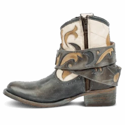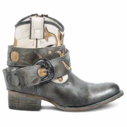 Let the booties do the talking in TASH. Intricately designed with laser cut detailing, a multi-colored contrasting shaft and embellished with stud elements. Make this bootie yours with a removable buckle belt to showcase the 100% full grain leather construction, inside working brass zipper and dual leather pull straps.