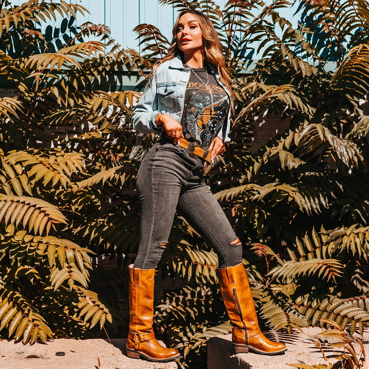 Geared for the season ahead, WAGNER is equipped with a tire tread sole for grip and a tall full-grain leather shaft. Settled on a low heel, this square toe boot is completed with a functional inside zip closure and exterior pull straps.