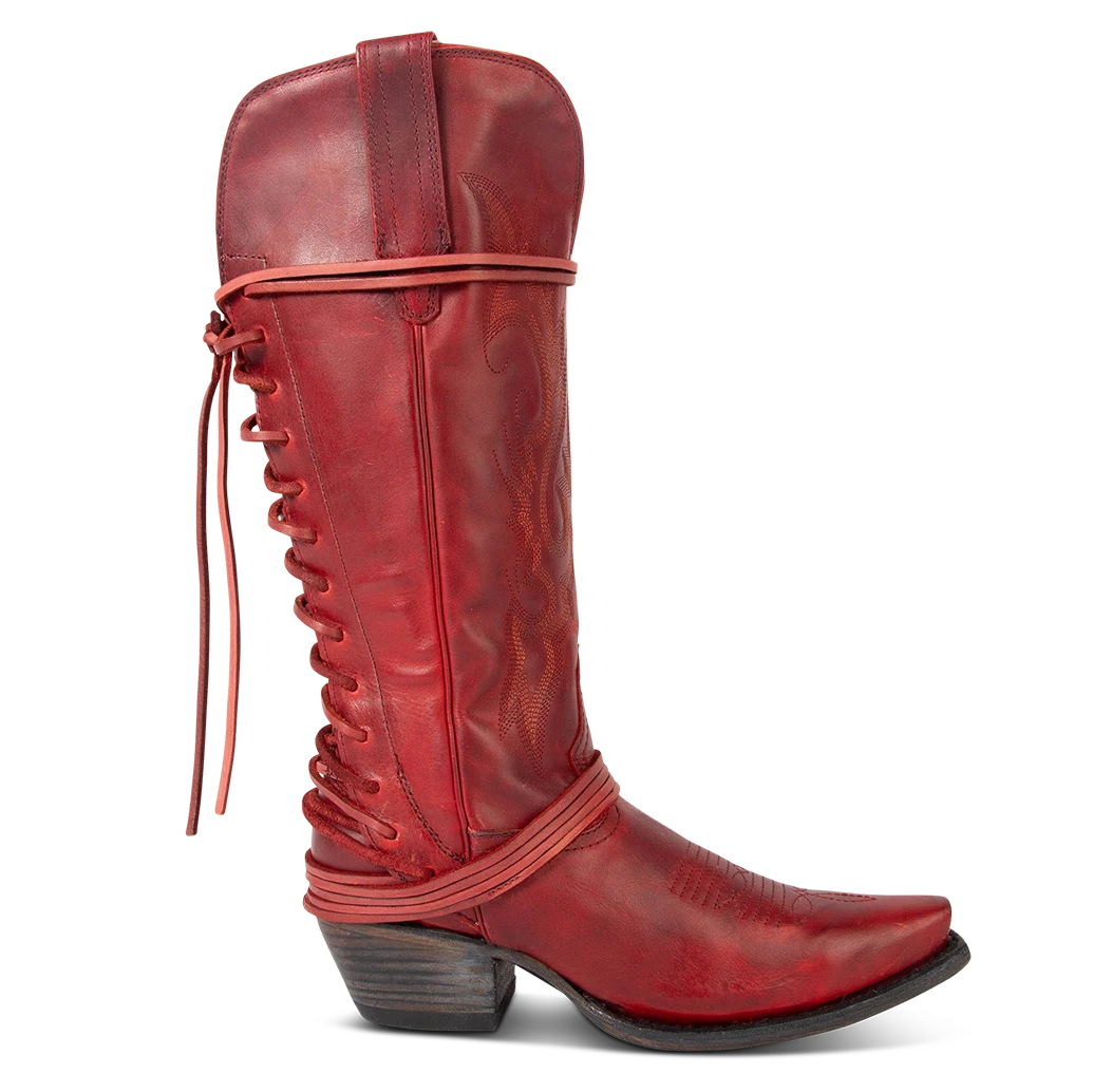 Laying down the law, WARDON is a step beyond the ordinary. Wrapped leather detailing and an expandable back lacing panel exude FREEBIRD heritage and allow for a personalized fit. Crafted with a traditional snip toe, decorative stitching, and double pull straps.