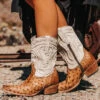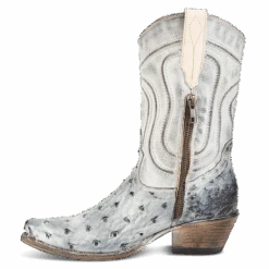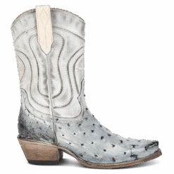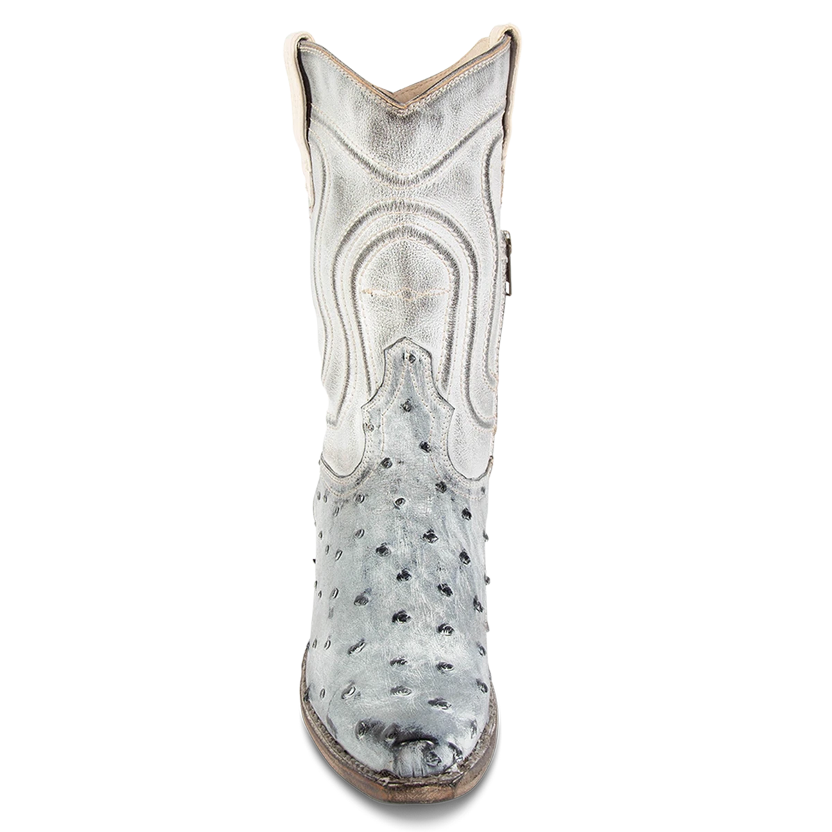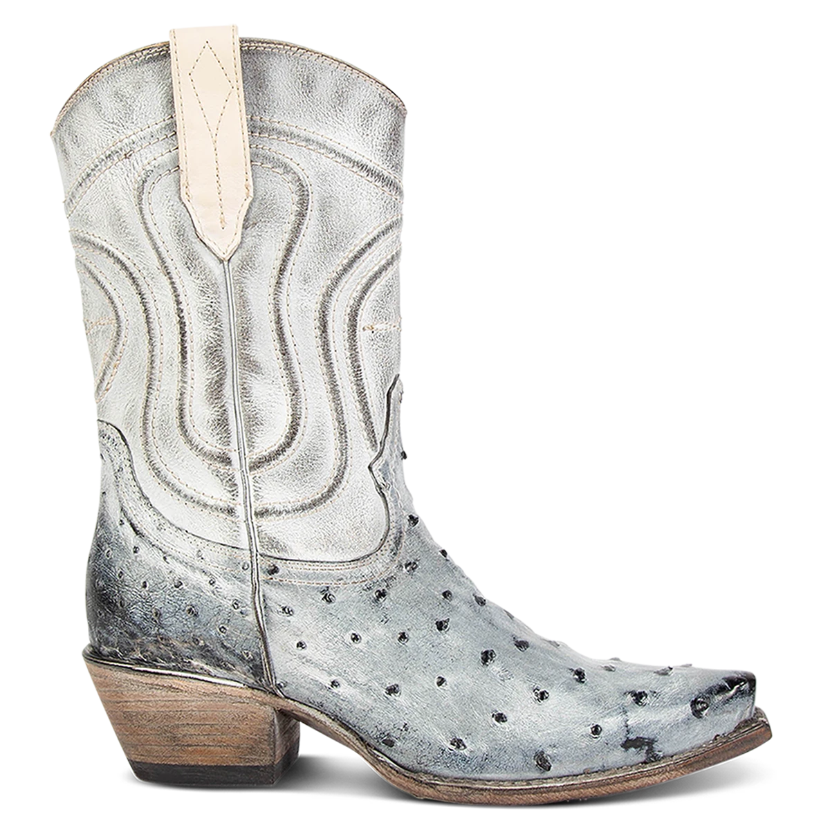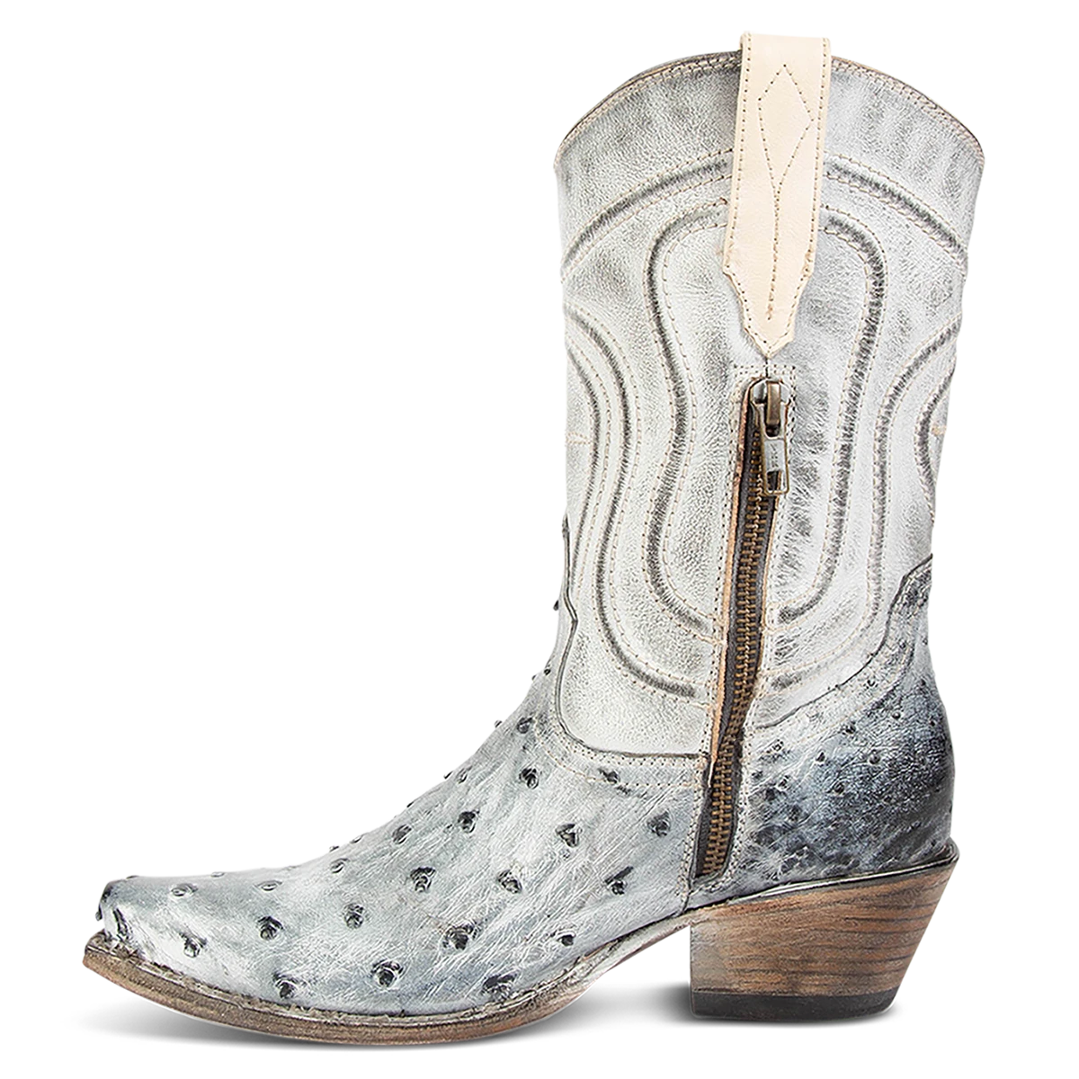 Distinguished by its details, WARRICK tells a story of western heritage by creating a unique combination of contrasting full-grain and exotic leathers. In this mid-calf silhouette, these boots are crafted with a decorative embroidered upper, double pull straps, and an inside zip closure. Designed with genuine ostrich leather.