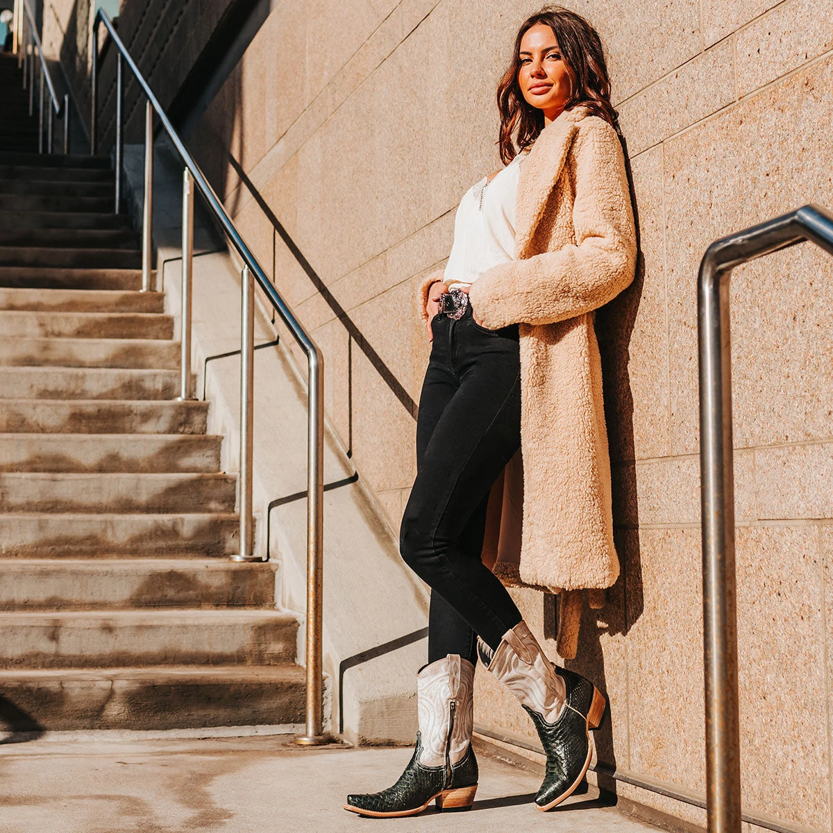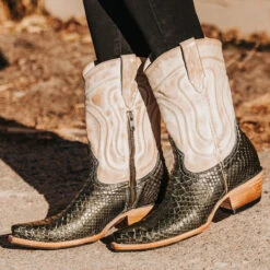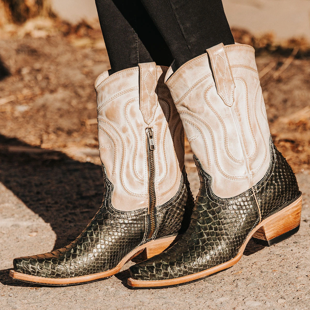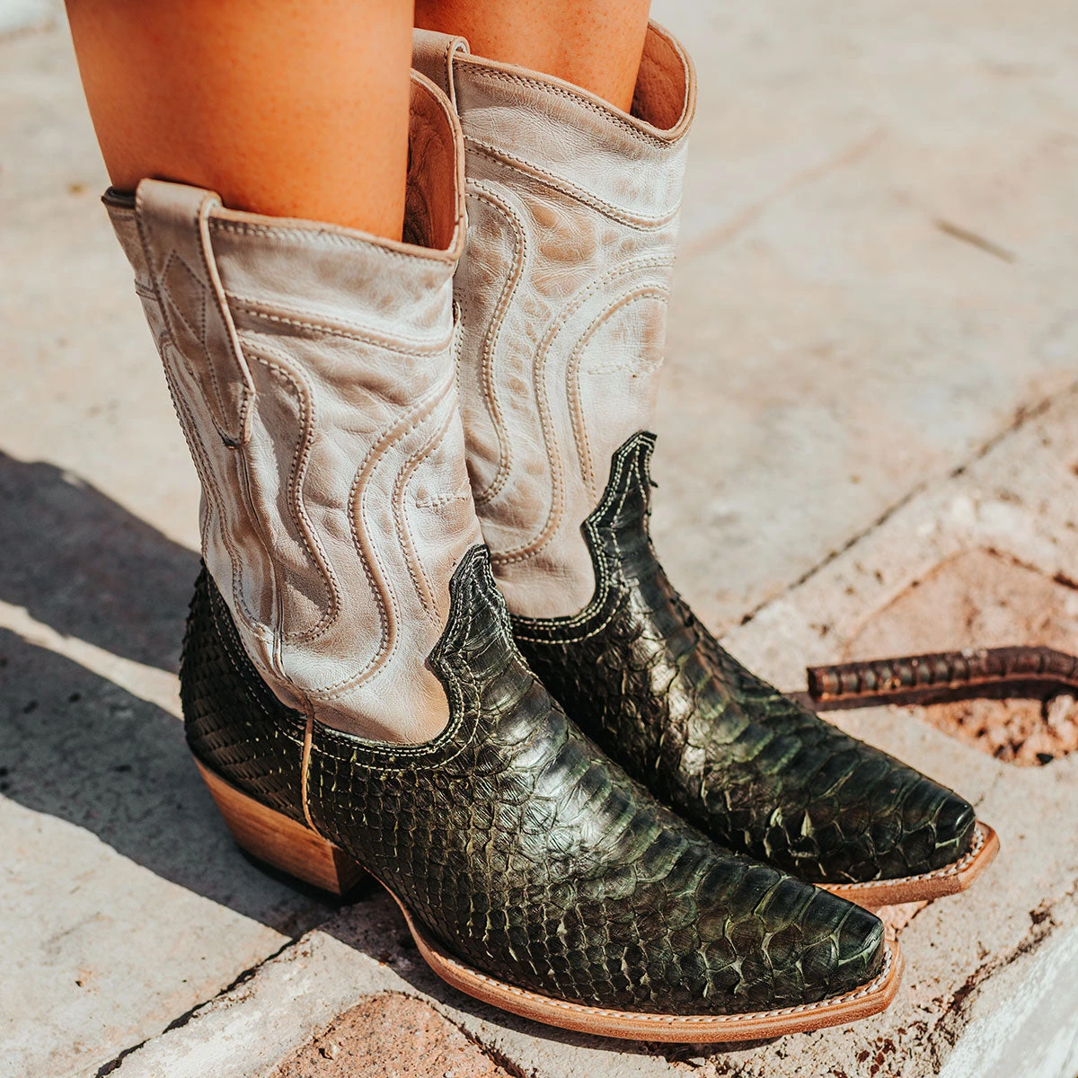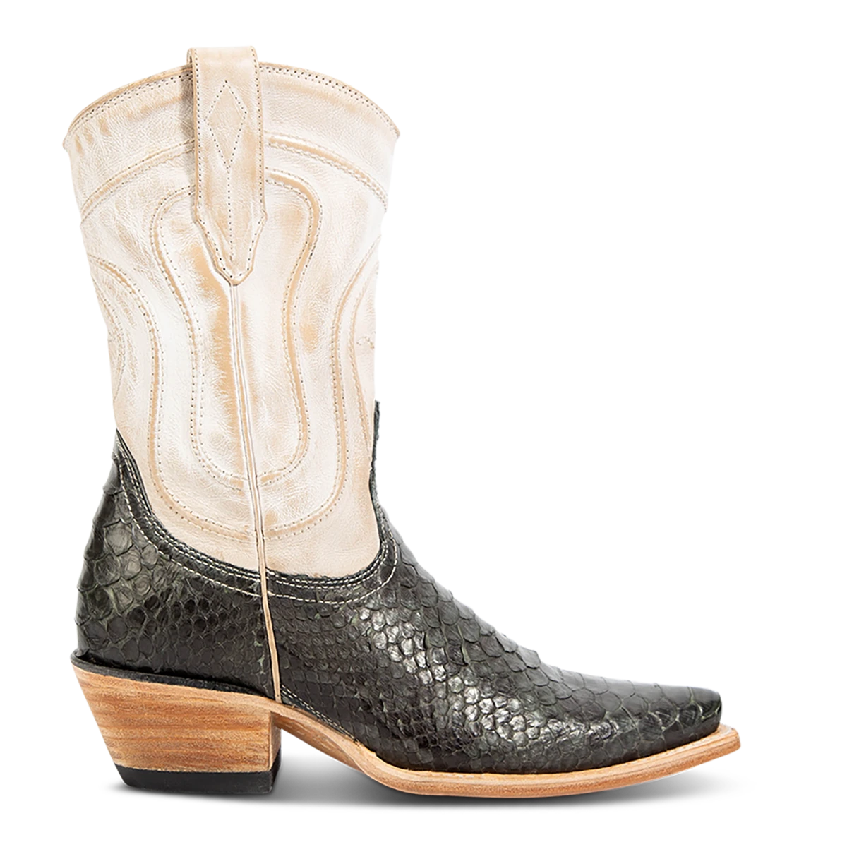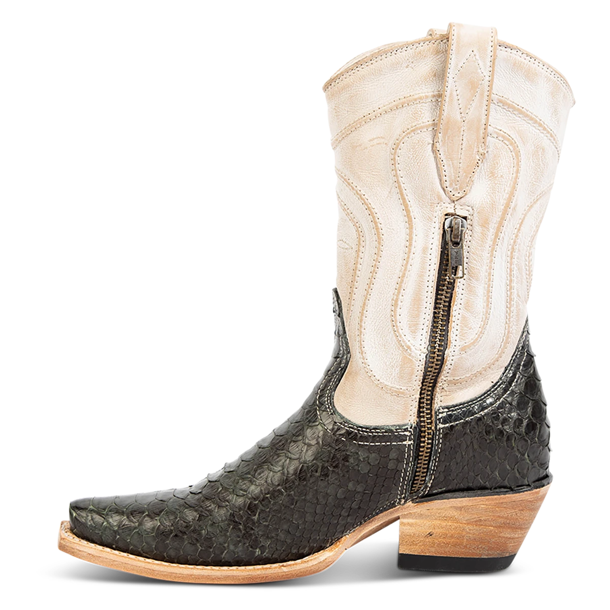 Distinguished by its details, WARRICK tells a story of western heritage by creating a unique combination of contrasting full-grain and exotic leathers. In this mid-calf silhouette, these boots are crafted with a decorative embroidered upper, double pull straps, and an inside zip closure. Designed with genuine python leather.