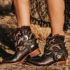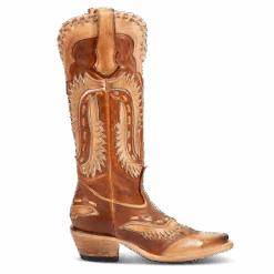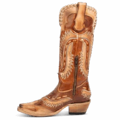 Talk the talk and walk the walk in WAYNE. This western-silhouette boot is crafted with laser cut detailing throughout a multi-texture shaft, symmetrical leather pull straps and an inside brass zip closure for ease of slipping on. Lassoed together with a snip toe and intricate whip stitching for a bandit look and feel.Â