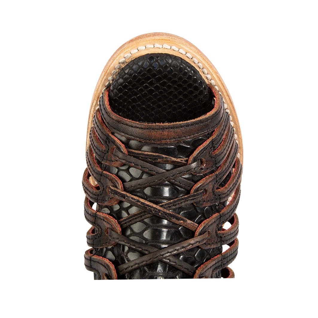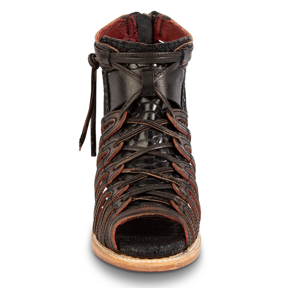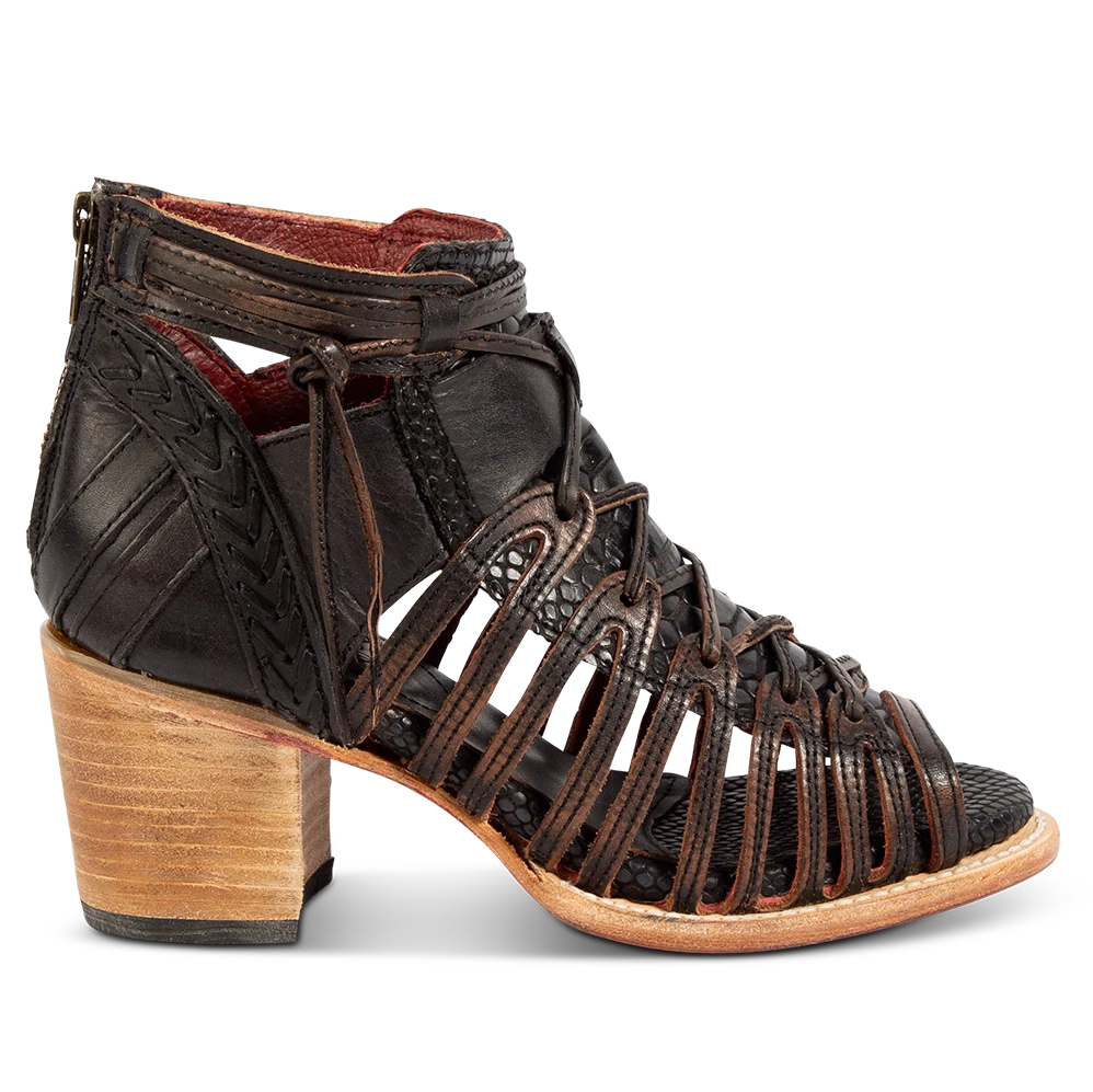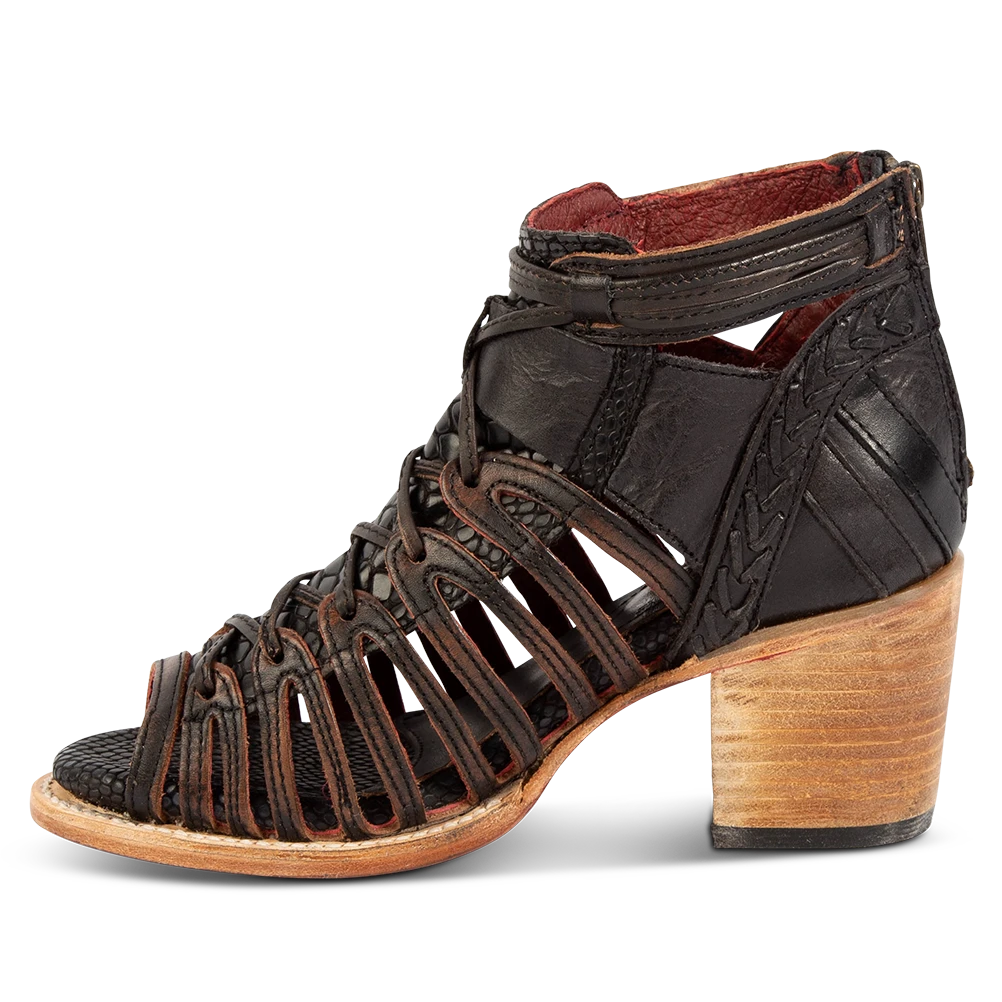Take a trip down the city streets of Denver in the WAZEE. Handcrafted with ornate detailing, this eye catching sandal is one not to miss. Exposed sides are complemented with criss-crossing leather lacing and a working brass zip closure.