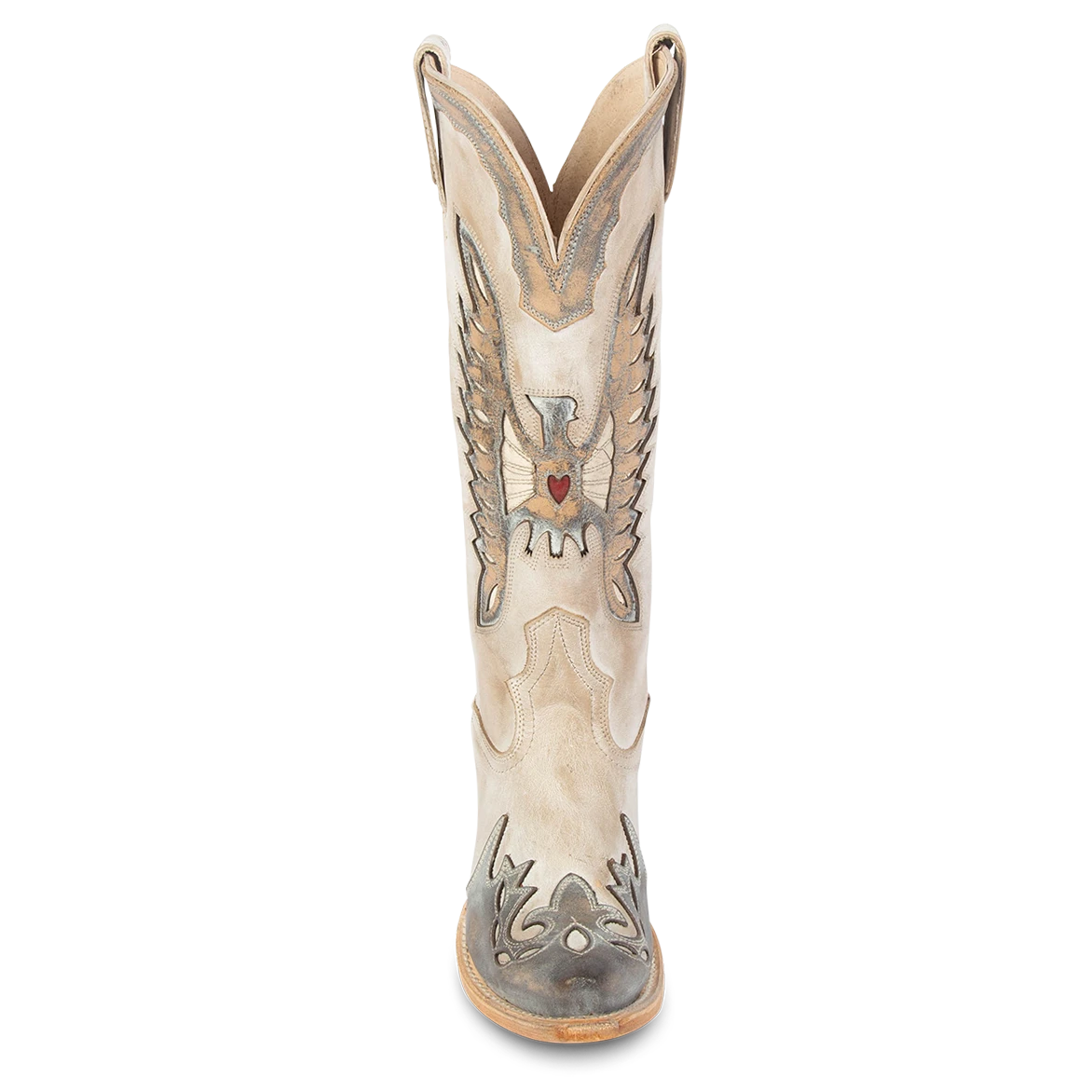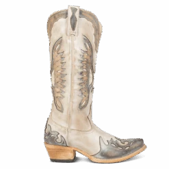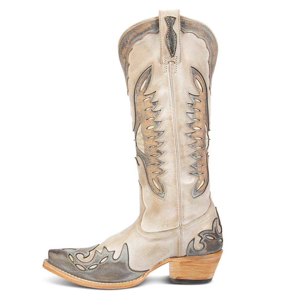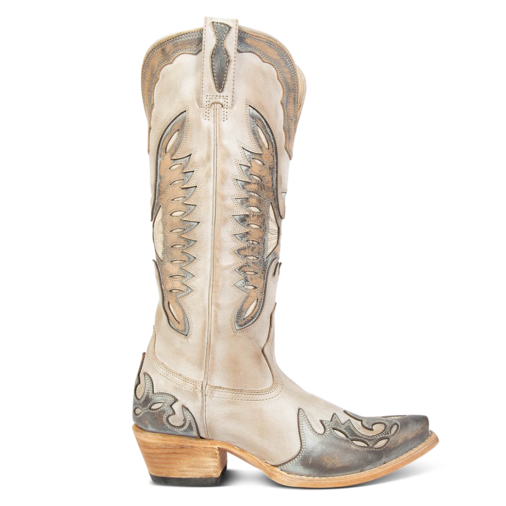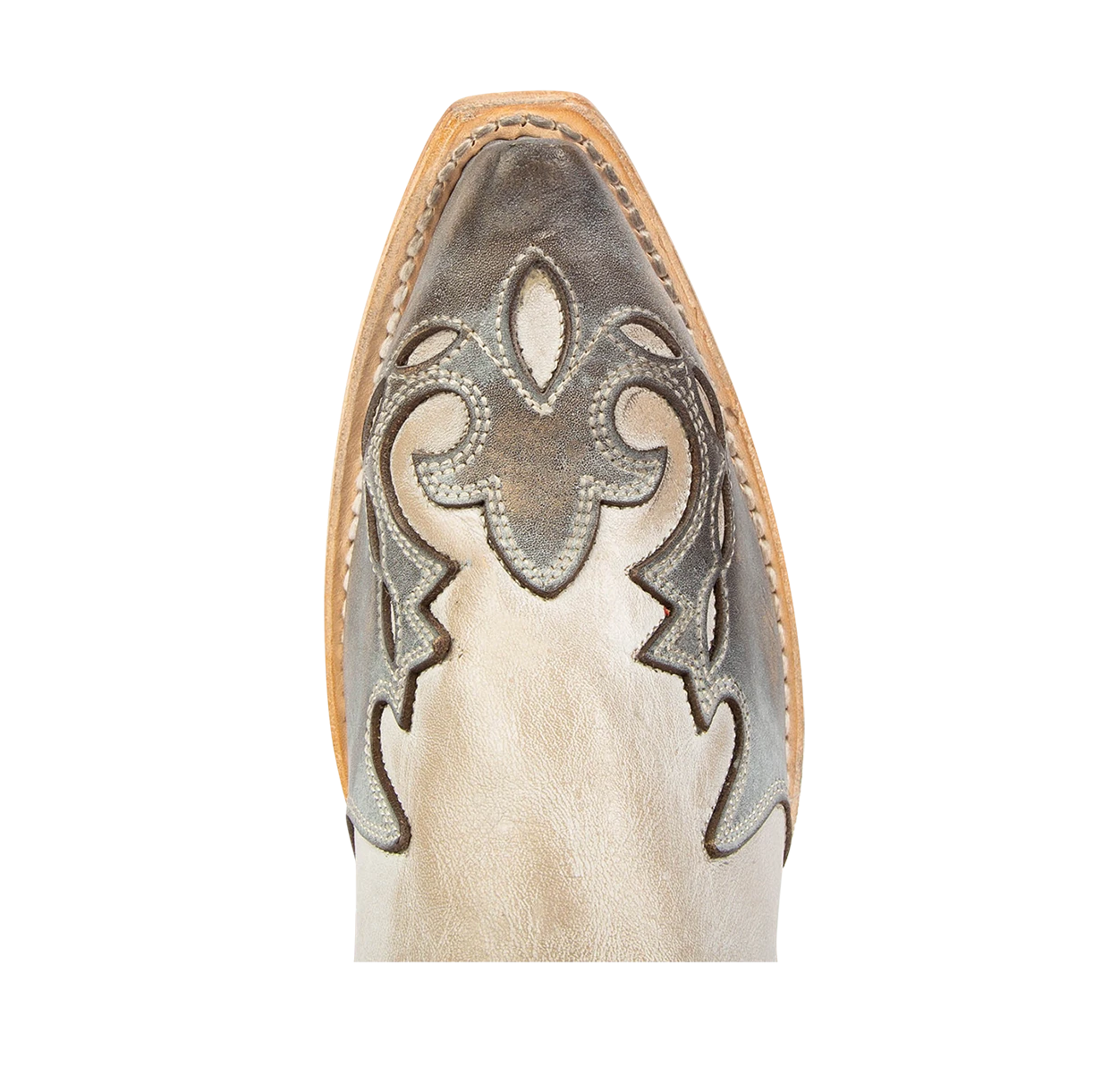 Ace in the hole – WILLIE. Constructed with intricate laser cut detailing, this western silhouette showcases multi-colored leather, a traditional snip toe, and exterior pull straps. The decision is yours, choose wisely.