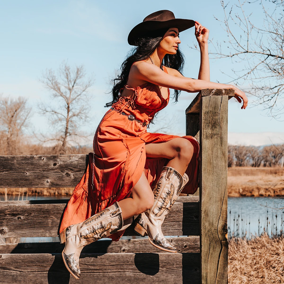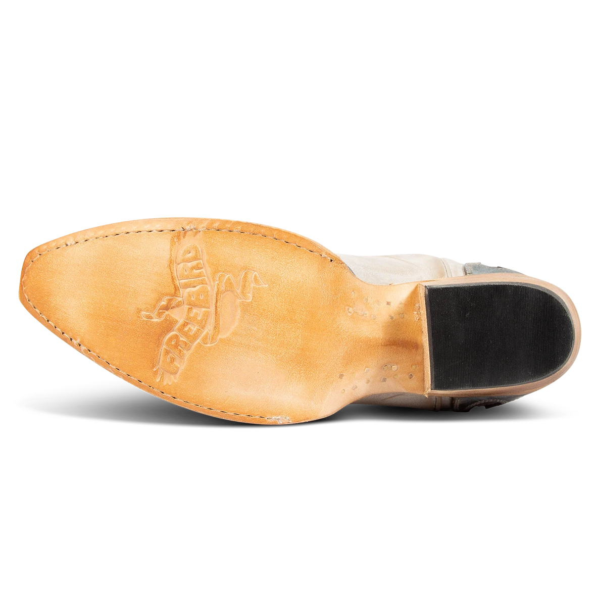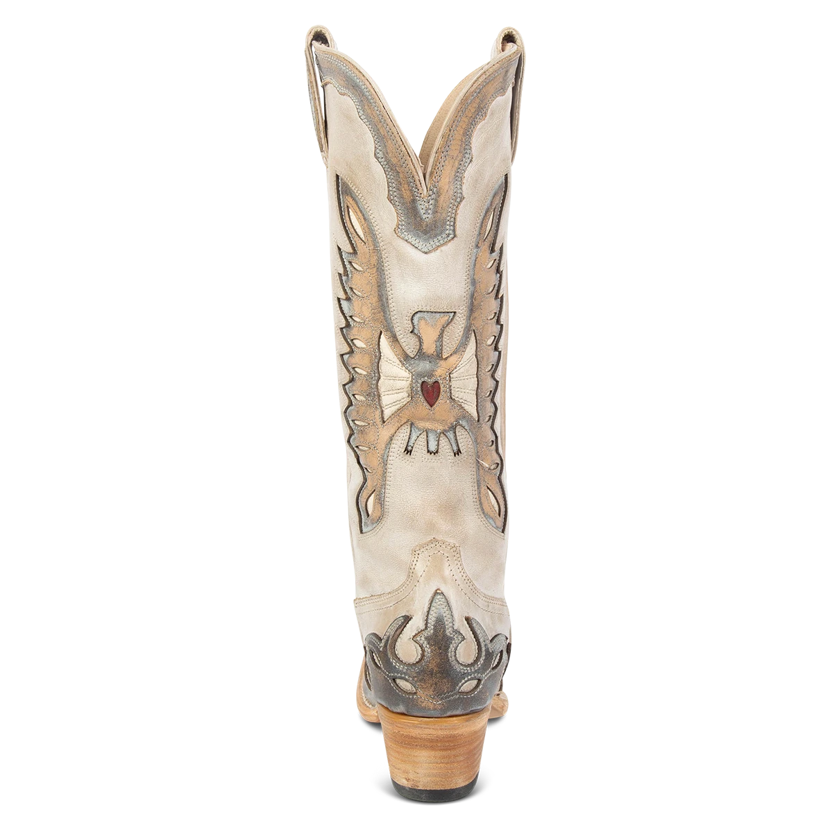Ace in the hole – WILLIE. Constructed with intricate laser cut detailing, this western silhouette showcases multi-colored leather, a traditional snip toe, and exterior pull straps. The decision is yours, choose wisely.