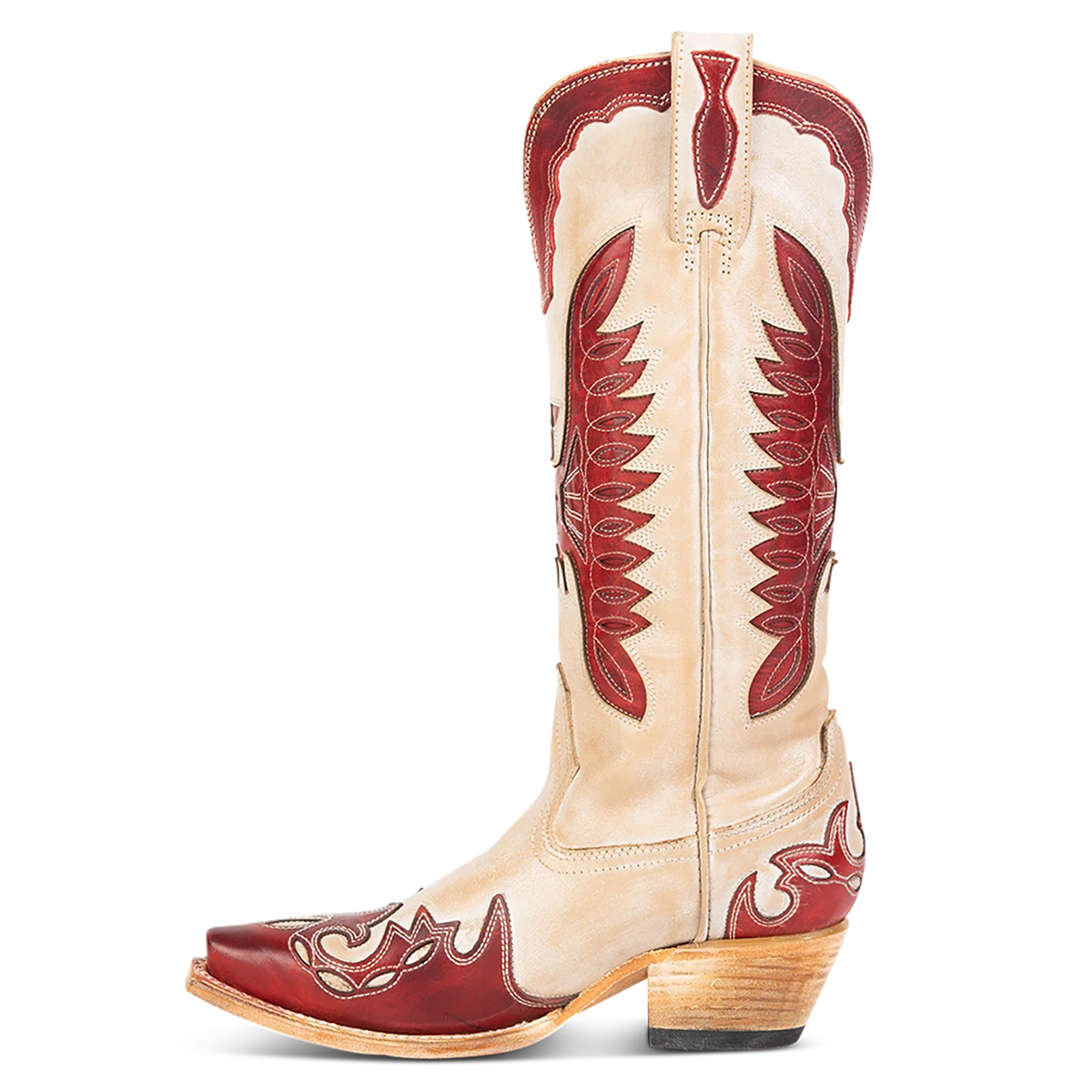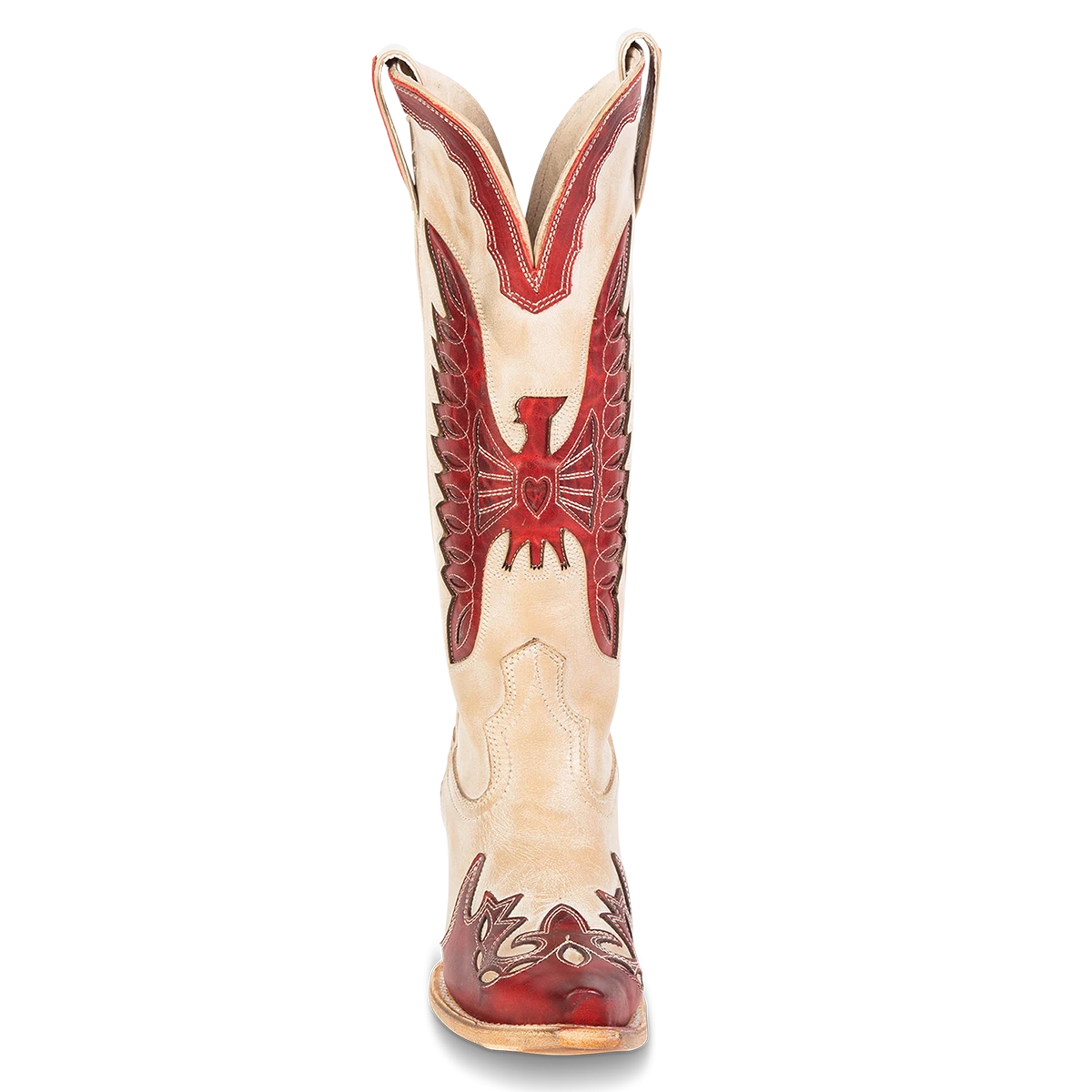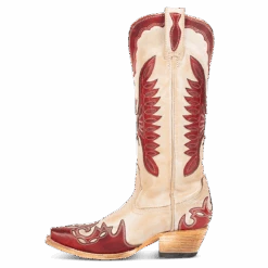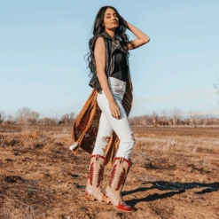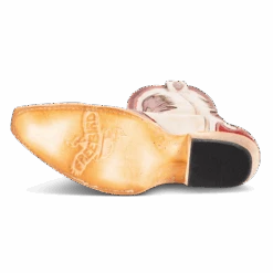 Ace in the hole – WILLIE. Constructed with intricate laser cut detailing, this western silhouette showcases multi-colored leather, a traditional snip toe, and exterior pull straps. The decision is yours, choose wisely.