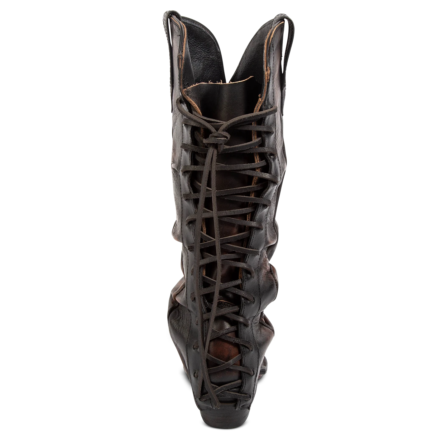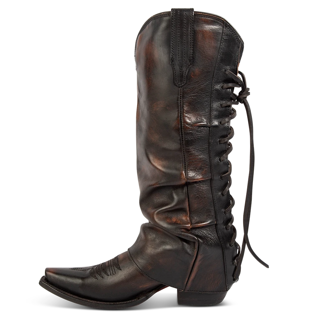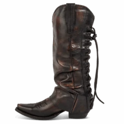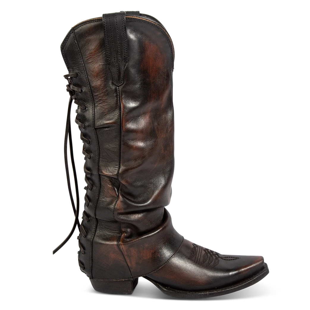 Best of the West – introducing WILMA. Handcrafted with 100% full grain leather, this relaxed shaft boot with adjustable back tie lacing combines our coveted western silhouette and traditional snip toe construction. Detailed with customary stitching and symmetrical leather pull straps.Â