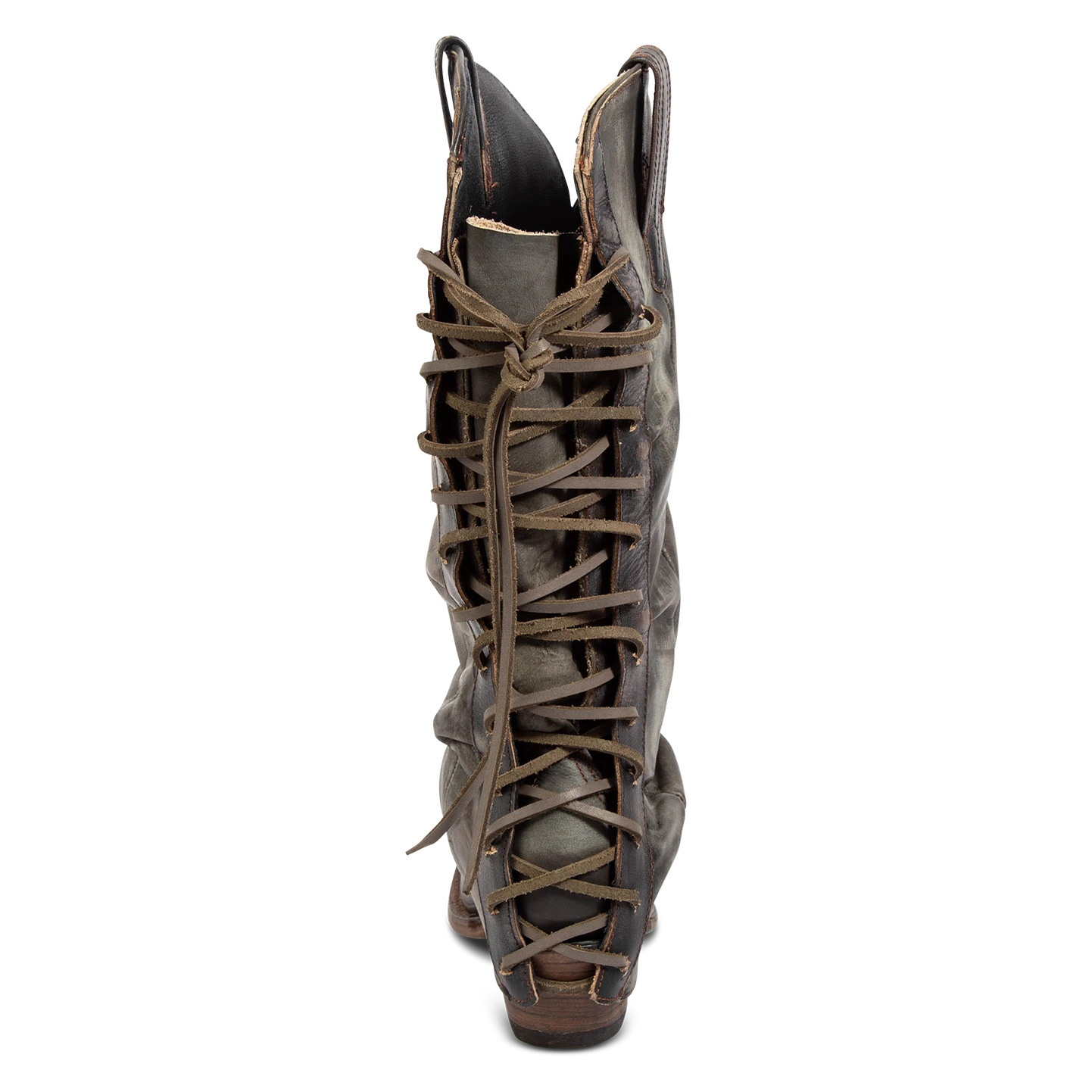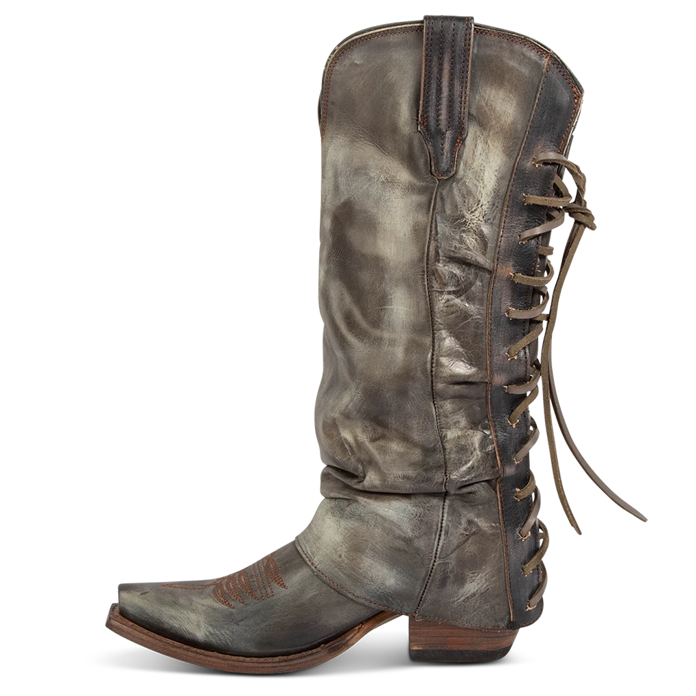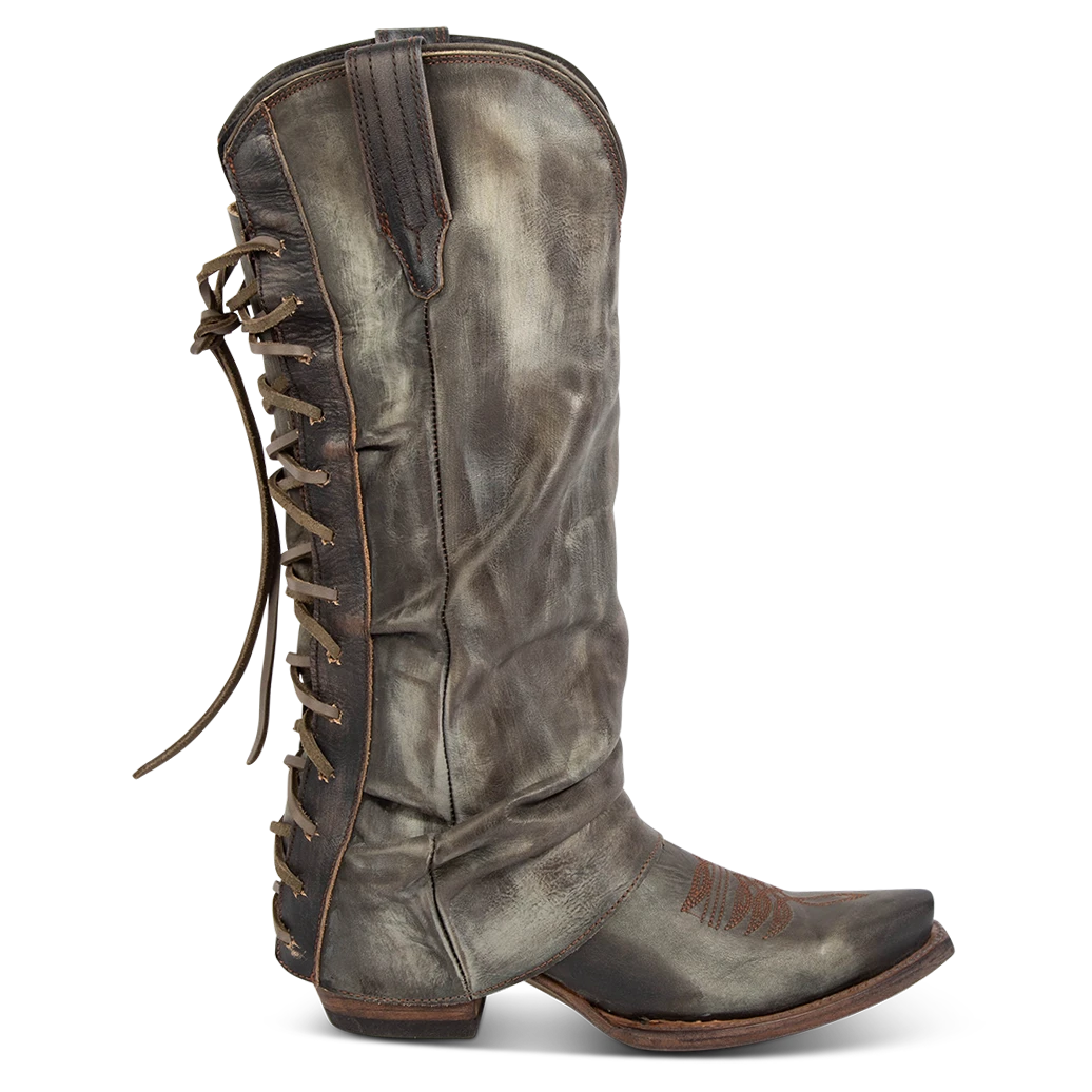 Best of the West – introducing WILMA. Handcrafted with 100% full grain leather, this relaxed shaft boot with adjustable back tie lacing combines our coveted western silhouette and traditional snip toe construction. Detailed with customary stitching and symmetrical leather pull straps.Â