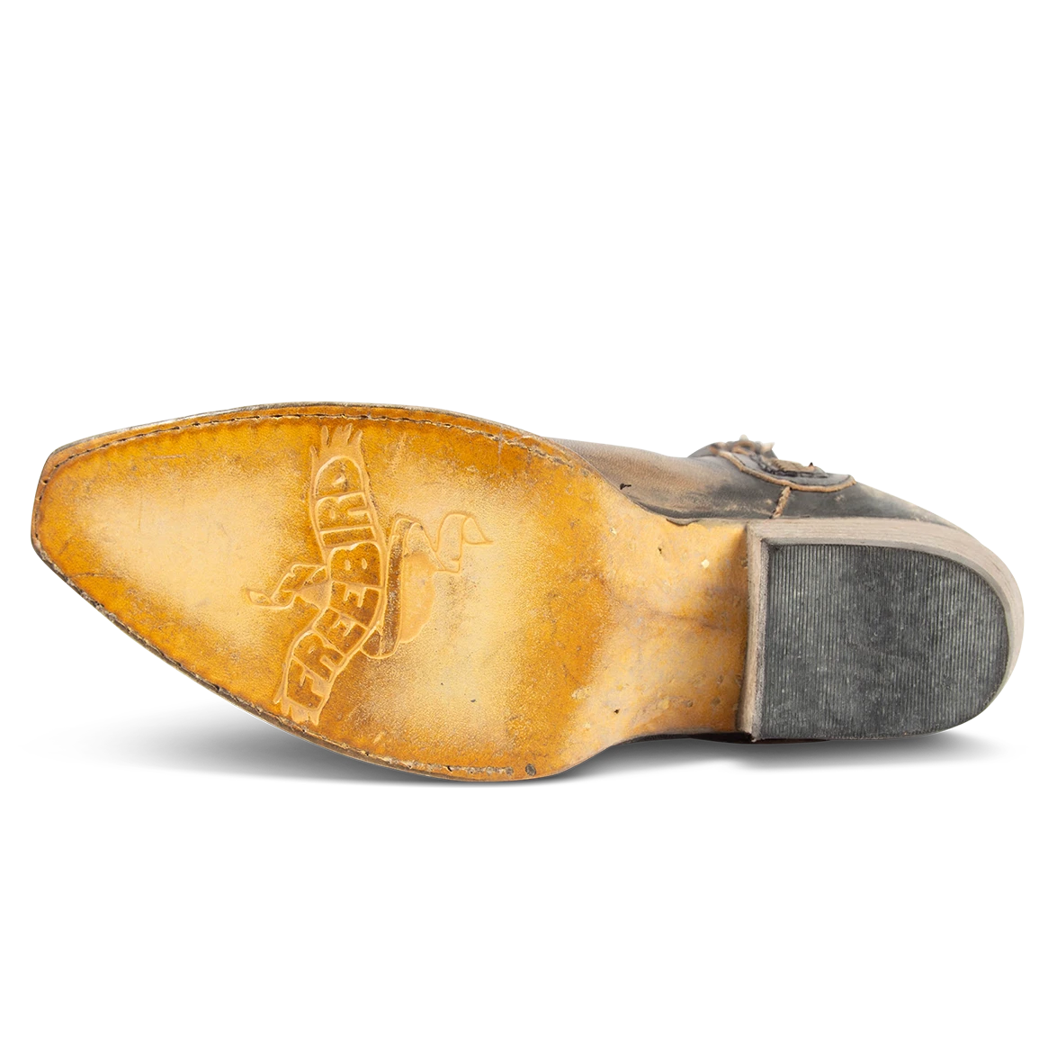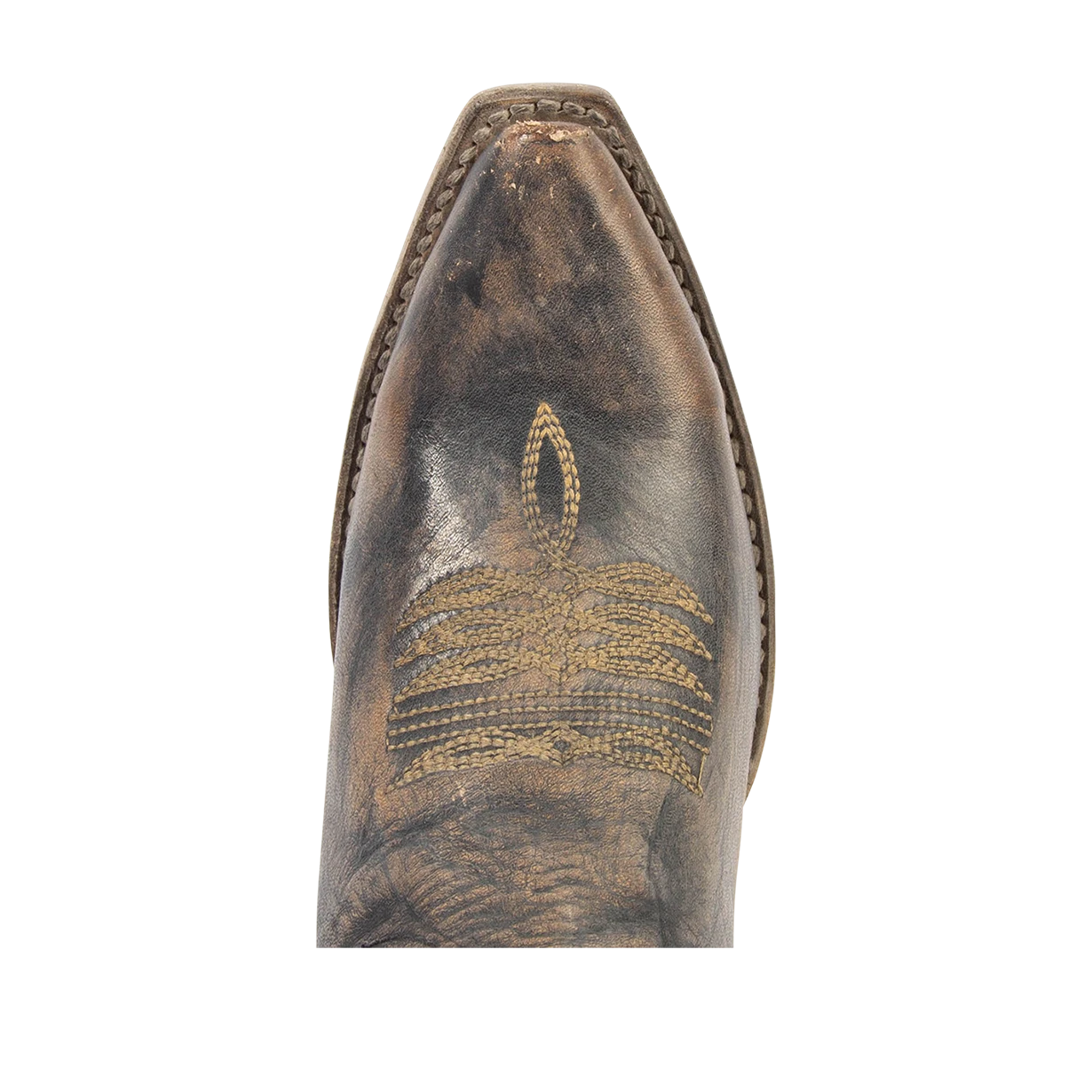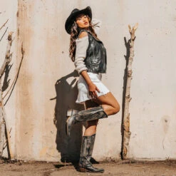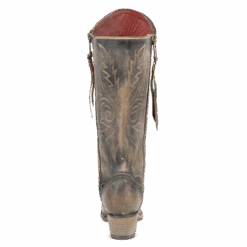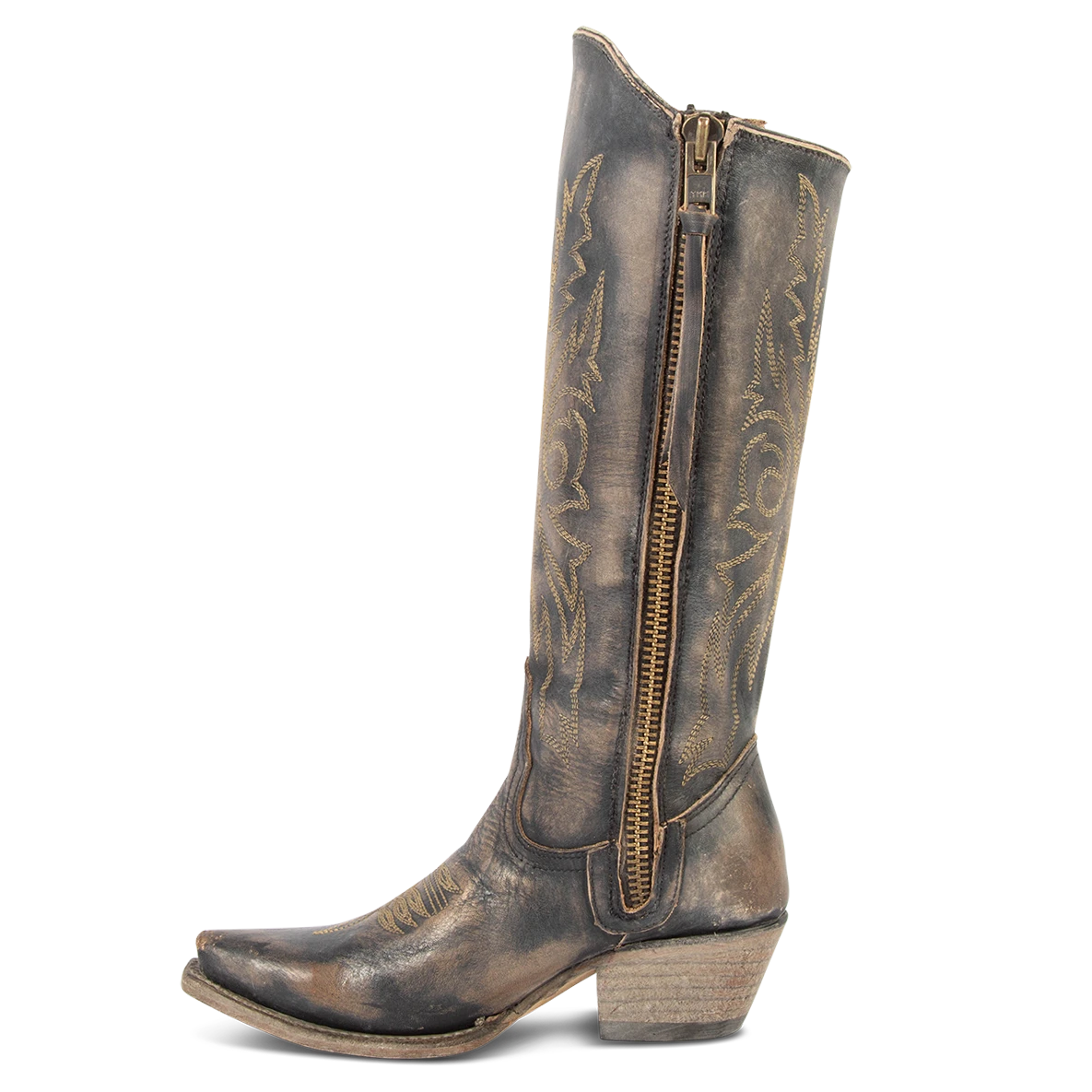 Western-inspired characteristics are found throughout this snip toe and decorative stitching knee-high boot. WOLFGANG is carefully taken through a rock-tumbling process to add a distinct distressed and vintage look. Designed with dual zip closures and accented with removable tassels.Â