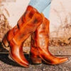 WOODLAND – an outlaw of the Wild West. This Most Wanted boot is the perfect ally with a western silhouette and traditional snip. Fashioned with decorative stitching and leather pull straps, this low heeled boot is ready for any contest.Â
