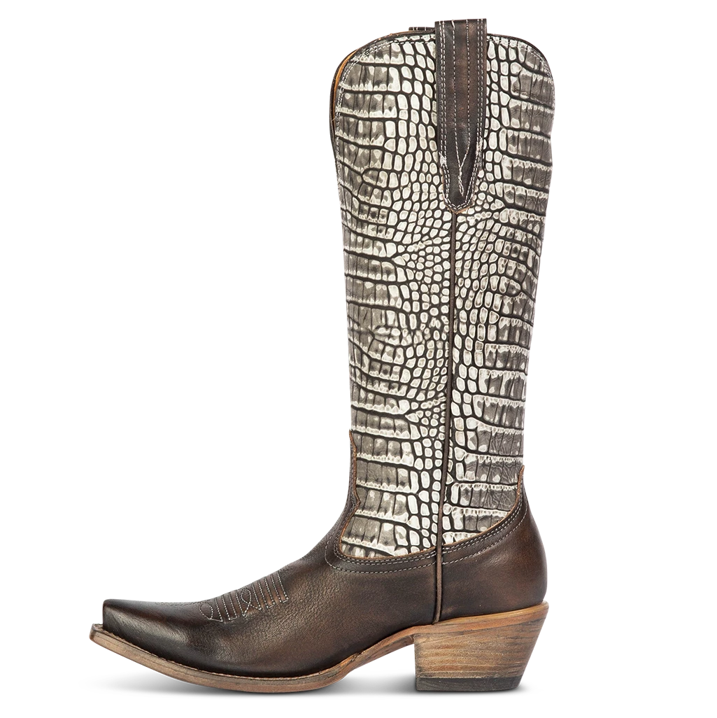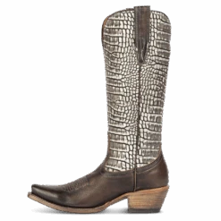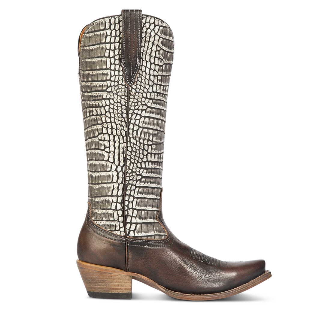 WOODLAND – an outlaw of the Wild West. This Most Wanted boot is the perfect ally with a western silhouette and traditional snip. Fashioned with decorative stitching and leather pull straps, this low heeled boot is ready for any contest.Â