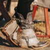WOODLAND – an outlaw of the Wild West. This Most Wanted boot is the perfect ally with a western silhouette and traditional snip. Fashioned with decorative stitching and leather pull straps, this low heeled boot is ready for any contest.Â