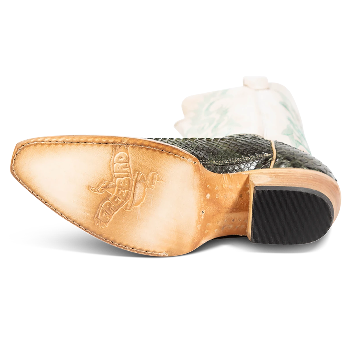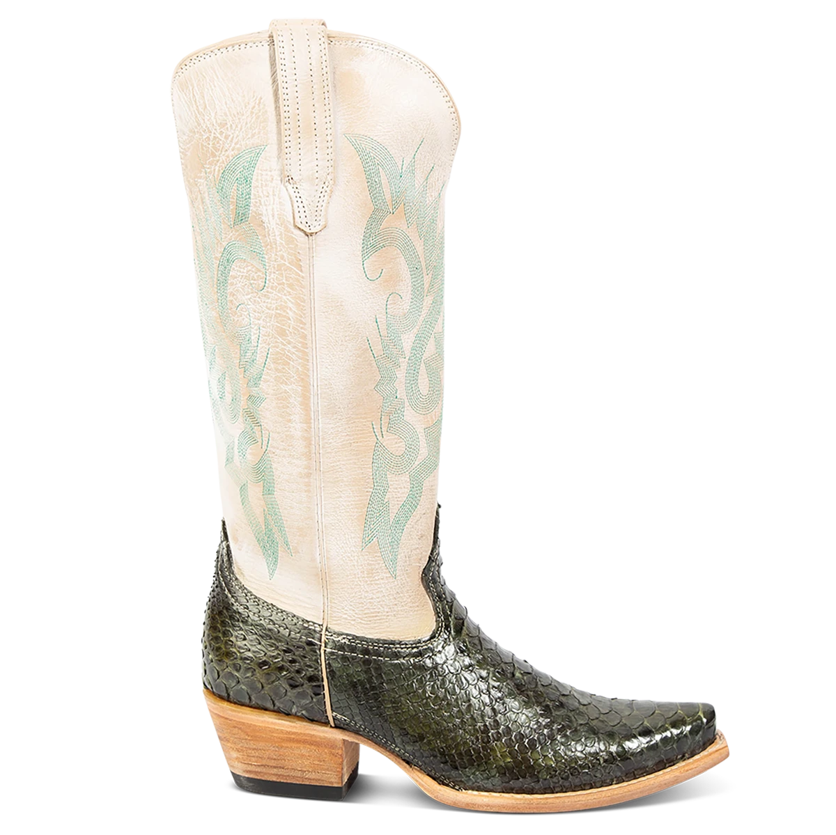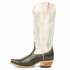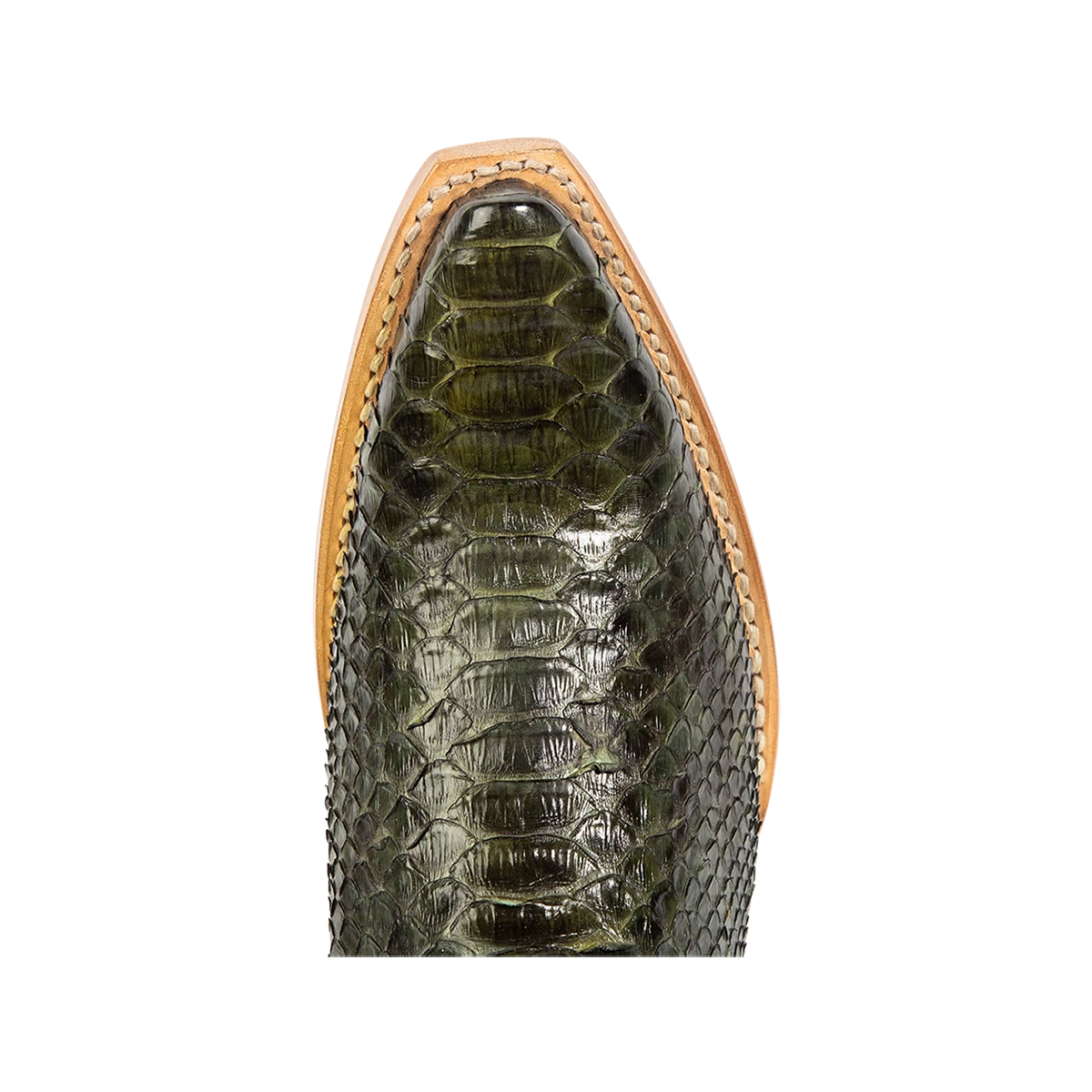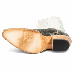 WOODLAND – an outlaw of the Wild West. This Most Wanted boot is the perfect ally with a western silhouette and traditional snip. Fashioned with decorative stitching and leather pull straps, this low heeled boot is ready for any contest. Designed with geniune python leather.