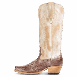 WOODLAND – an outlaw of the Wild West. This Most Wanted boot is the perfect ally with a western silhouette and traditional snip. Fashioned with decorative stitching and leather pull straps, this low heeled boot is ready for any contest. Constructed with genuine ostrich leather.Â