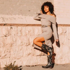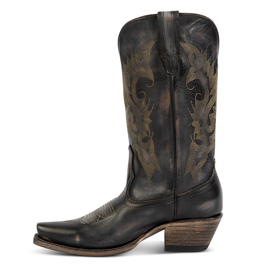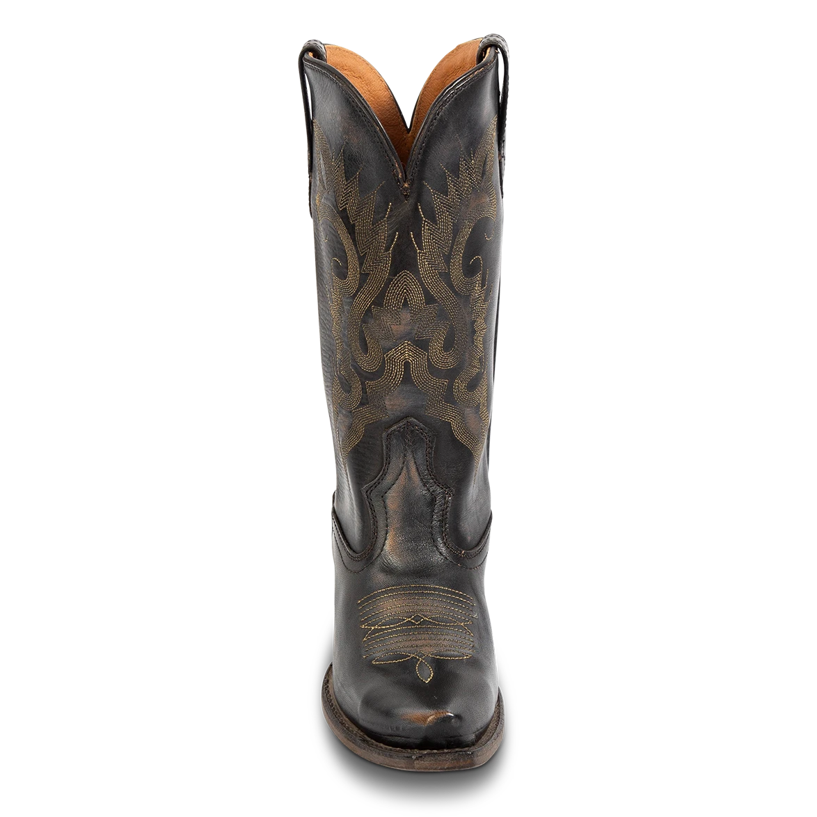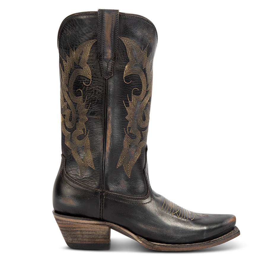 Inspired by the Wild West – WOODY has our hearts lassoed. Handcrafted with intricate shaft stitch detailing, a classic western snip toe and a low slanted heel, there’s no snake in this boot.Â