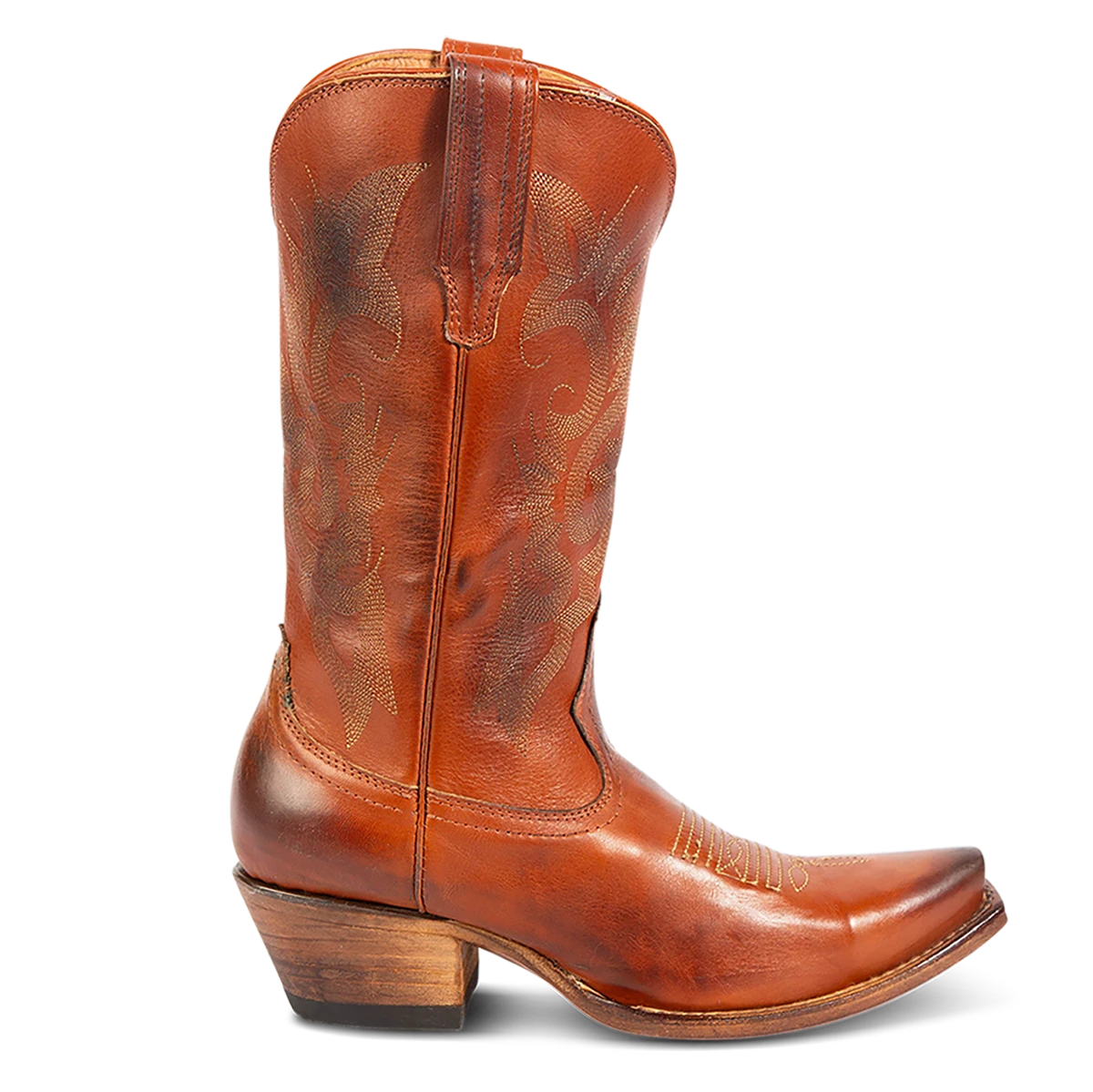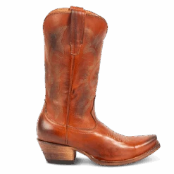Inspired by the Wild West – WOODY has our hearts lassoed. Handcrafted with intricate shaft stitch detailing, a classic western snip toe and a low slanted heel, there’s no snake in this boot.Â